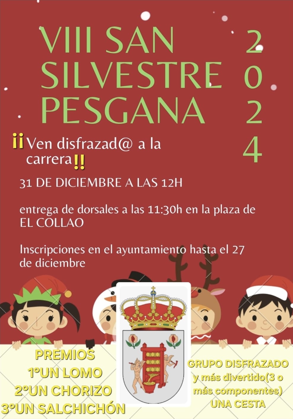 Se informa a tod@s l@s interesad@s que el próximo 31 de Diciembre, un año más se celebrará la Carrera San Silvestre Pesgana, se saldrá desde la Plaza del Collado, a partir de las 11:30h se entregarán los dorsales y a las 12:00 h dará comienzo la carrera.