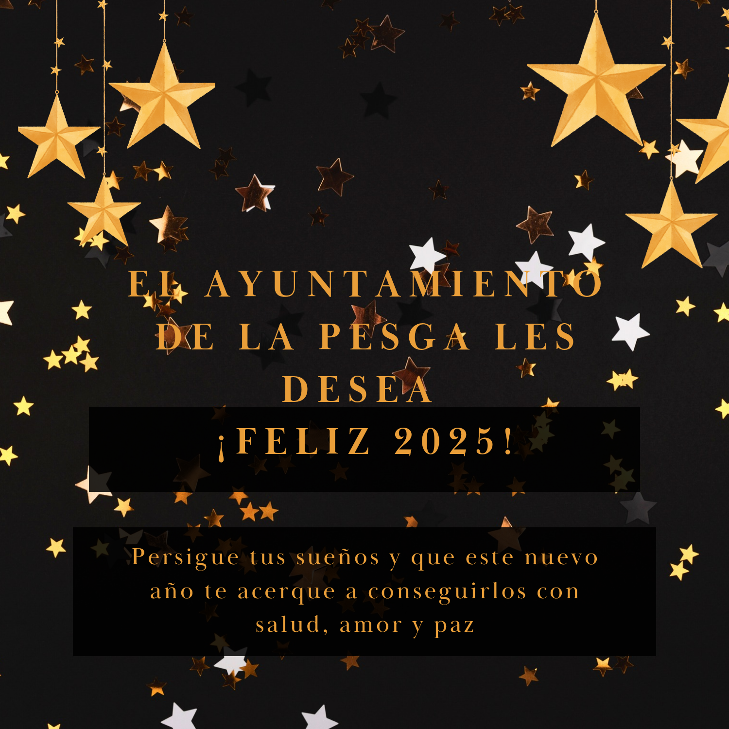 El Ayuntamiento de La Pesga le desea un feliz 2025 para usted, su familia y amistades más cercanas.Que sea este nuevo año, un gran año de prosperidad, sueños cumplidos, buenos momentos con personas maravillosas, amor, salud y paz.