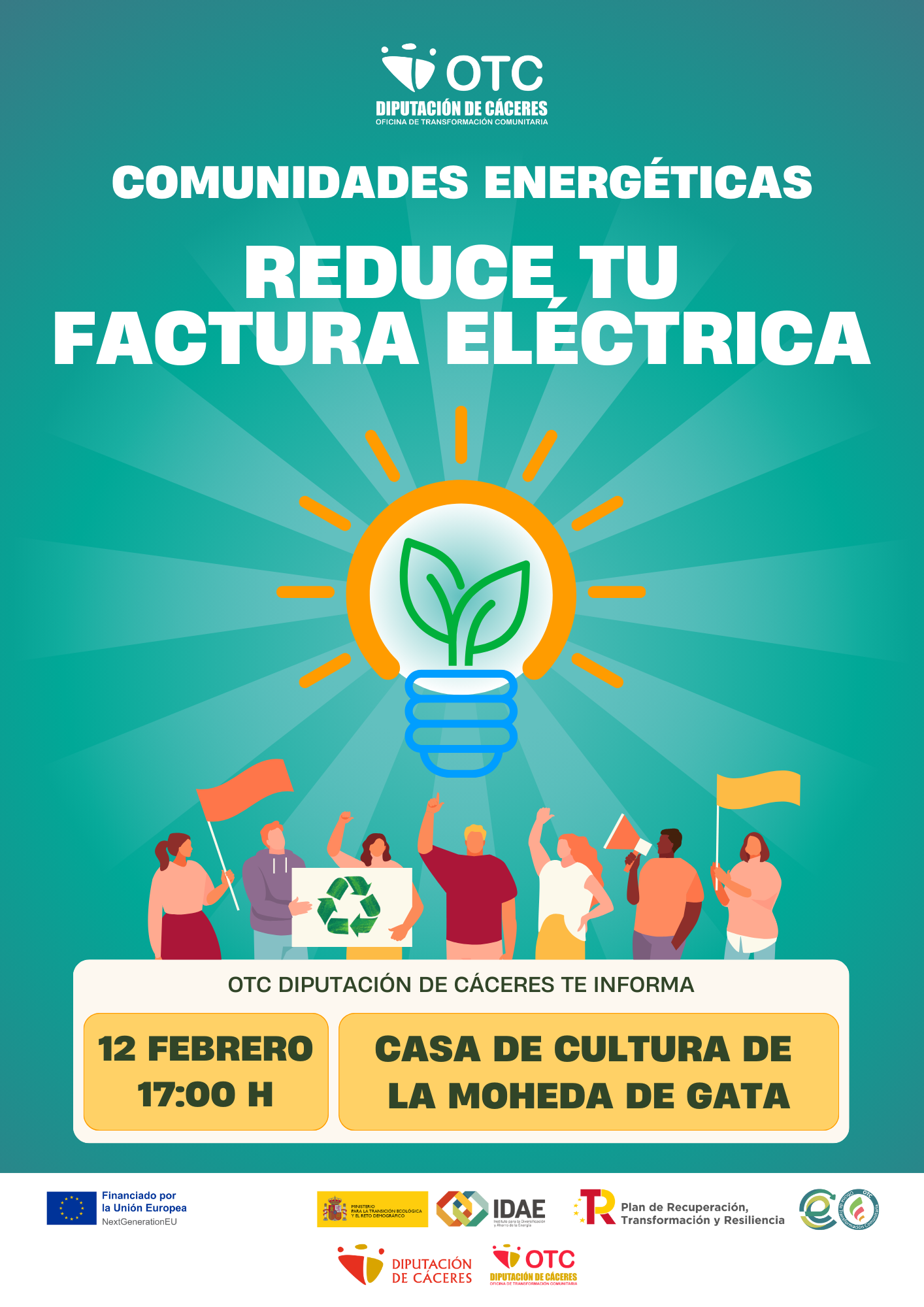 Se pone en conocimiento de toda persona interesada, que el próximo día 12 de febrero de 2025 a las 17h, se celebrará en la casa de cultura jornada informativa de comunidades energéticas, "Reduce tu factura eléctrica".