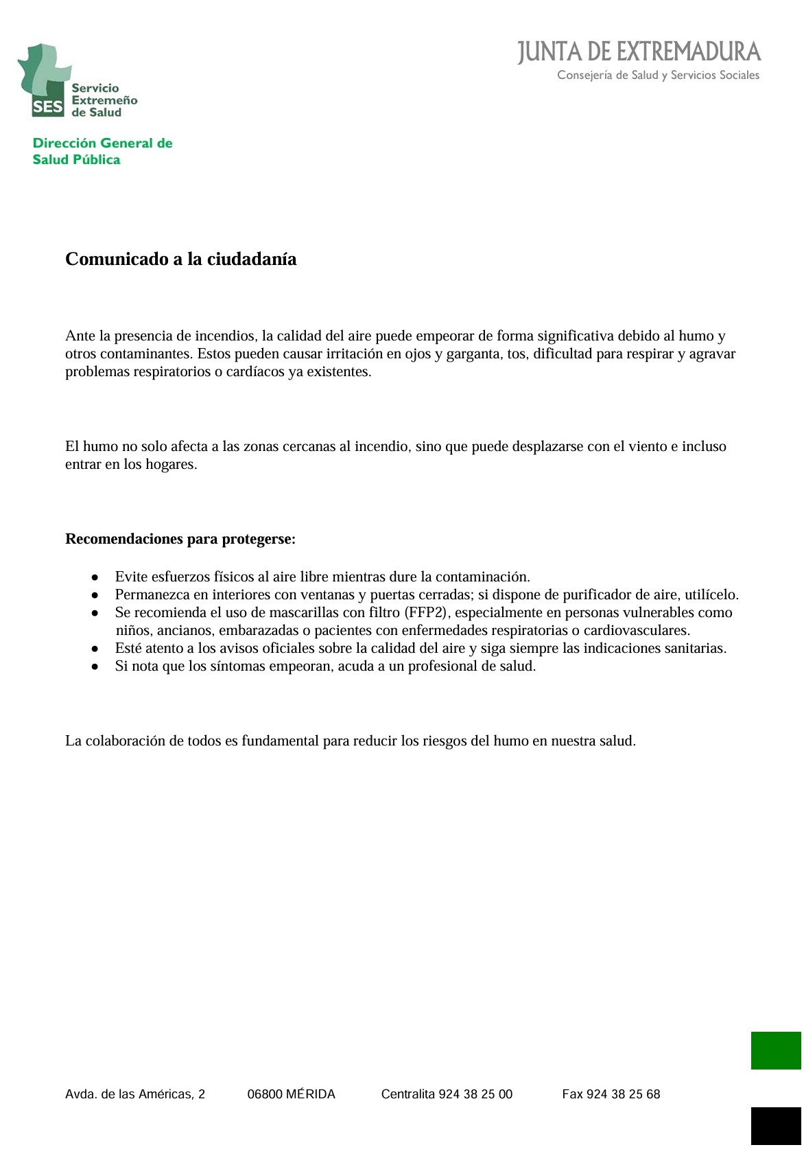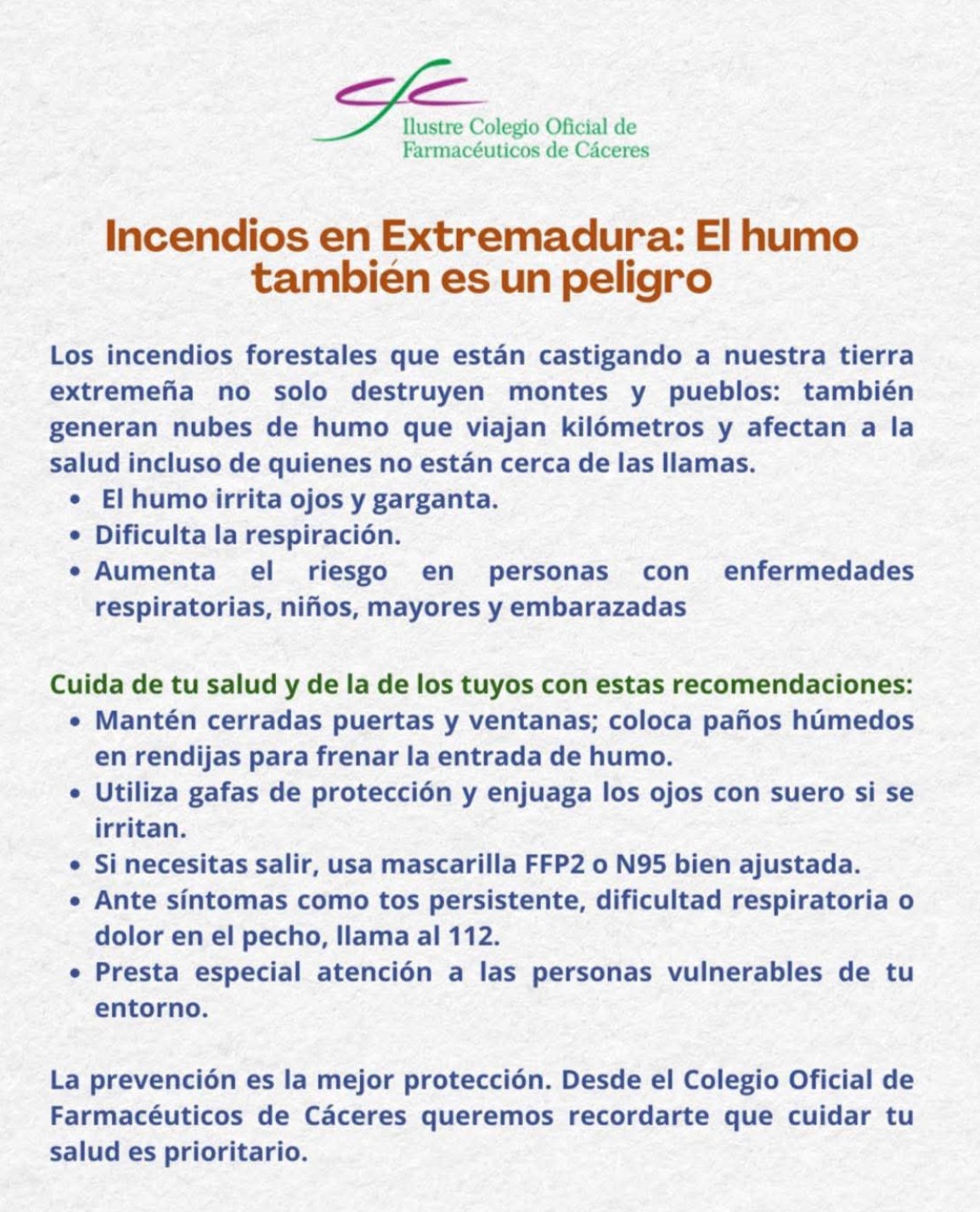 No hemos recibido ninguna alerta al respecto en nuestra localidad, pero os dejamos estos consejos a tener en cuenta por la población, sobretodo por la más vulnerable a los efectos que el humo pueda provocar.