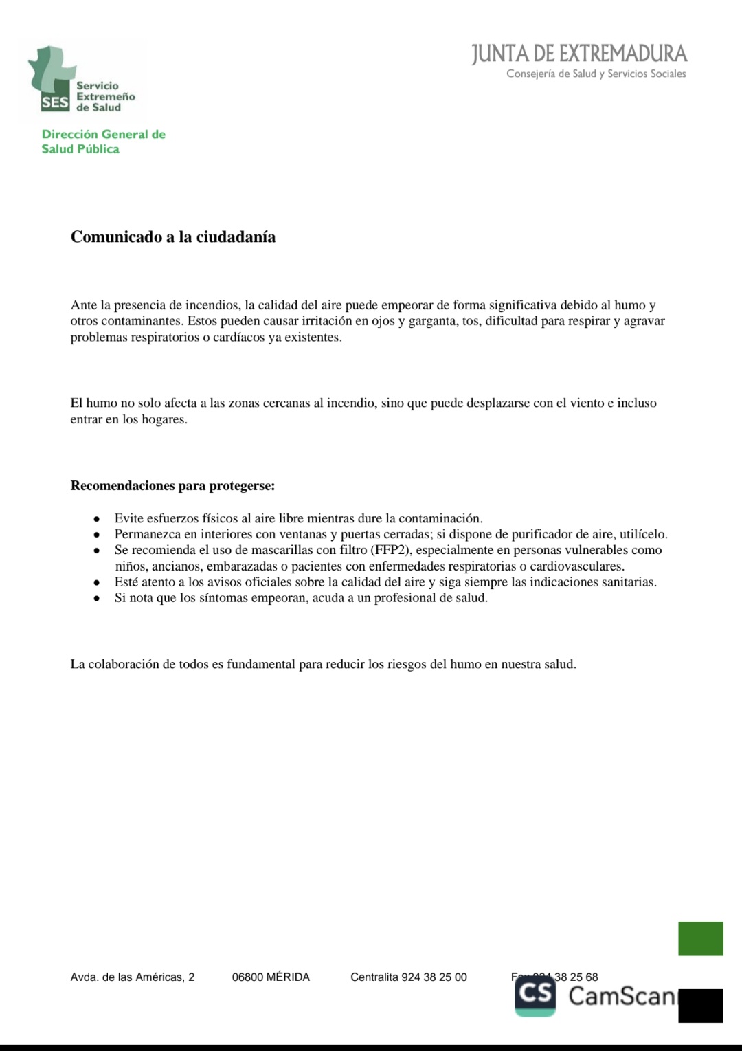 En archivo adjunto enviamos recomendaciones del Servicio Extremeño de Salud