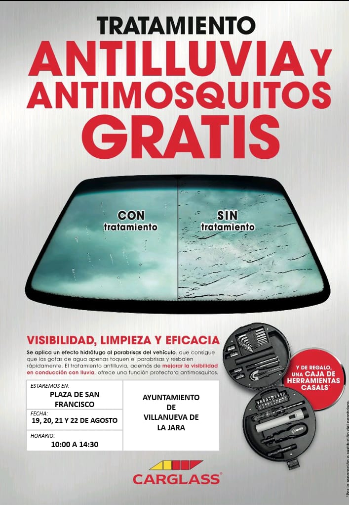Los técnicos de Carglass estarán el 19, 20, 21 y 22 de Agosto en la Plaza de San Francisco realizando una campaña de seguridad vial para asegurarse de que la luna de tu vehículo se encuentra en perfecto estado, y además os aplican GRATIS el tratamiento antilluvia.