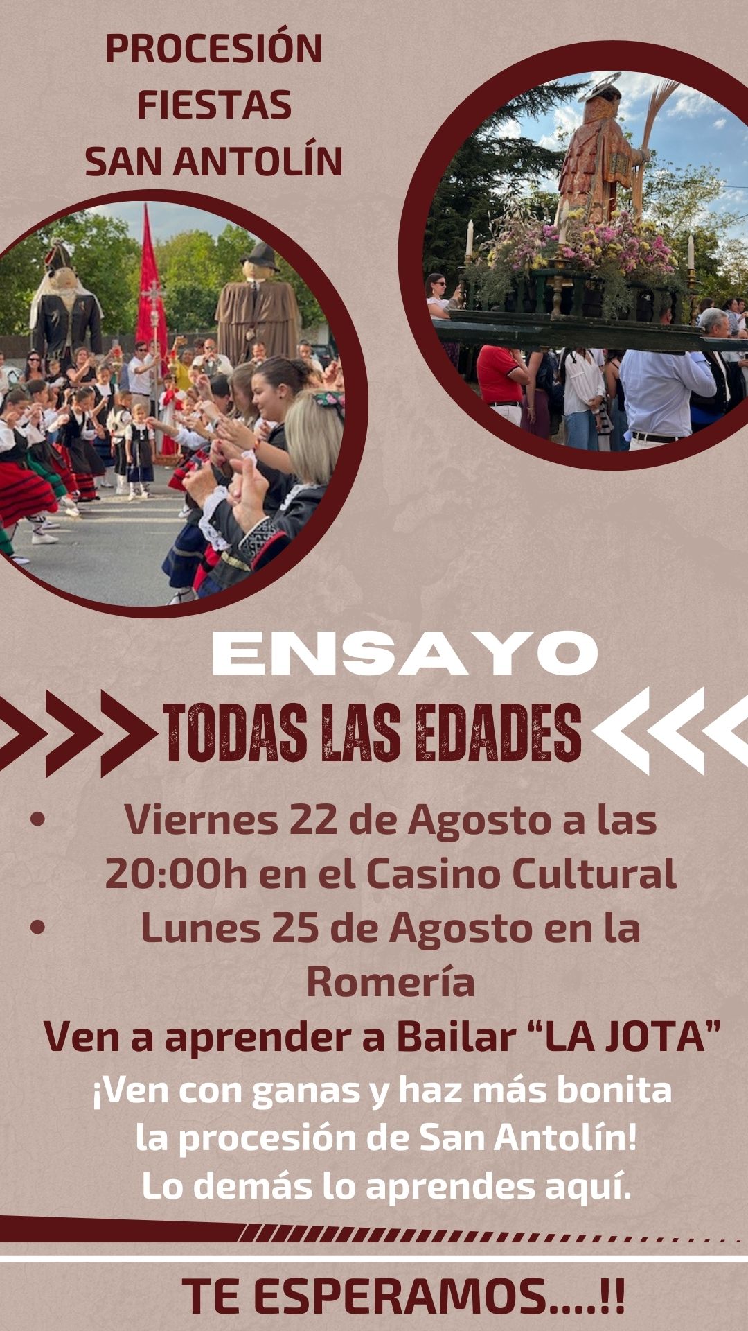 ¿Te apetece bailar en la procesión de San Antolín? 💃🎉 ¡Anímate! No hace falta saber jota, solo ganas de pasarlo bien 😄 Ensayos: