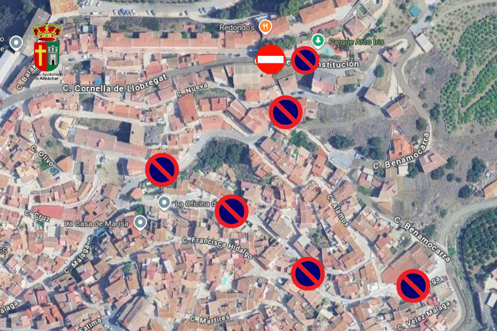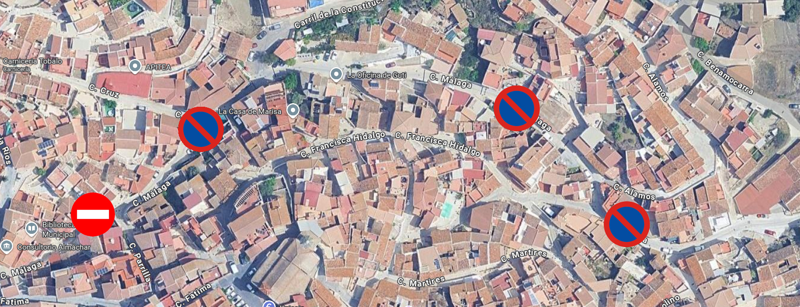 Prohibido aparcar en las zonas más estrechas (desde el río hasta la biblioteca) para facilitar el paso de camiones.