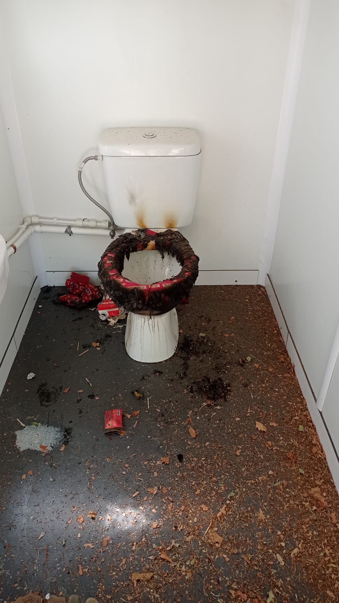 Desgraciadamente aparecen así hoy los aseos públicos municipales del parque en la zona de la “divisiña”, y ya es la TERCERA vez que ocurre un acto vandalico aquí. Estas instalaciones son para beneficio y uso de muchas personas del pueblo, probablemente y en su momento, hasta familiares de quien ha perpetrado esta salvajada sin sentido.