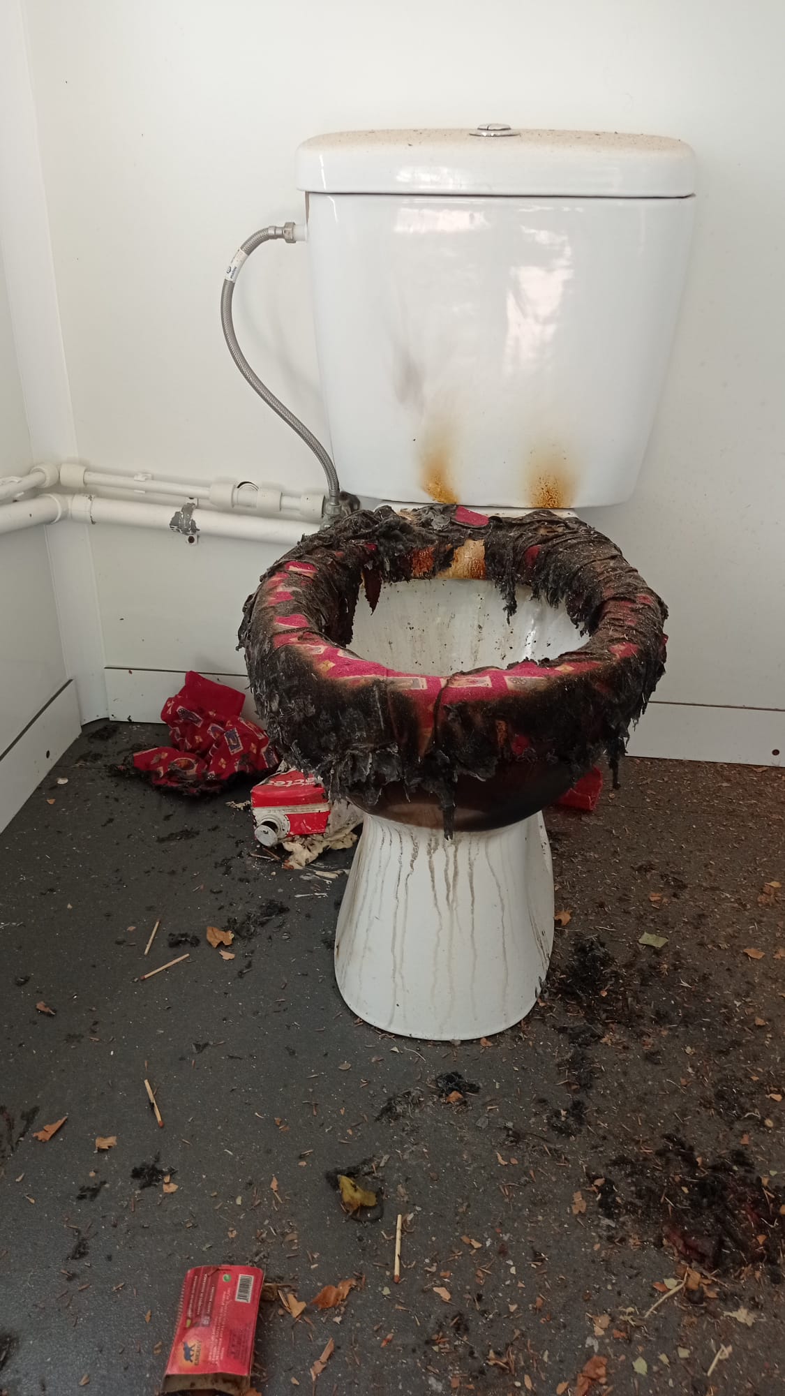 También hay un contenedor quemado, que como los baños, serán restaurados o restituidos.