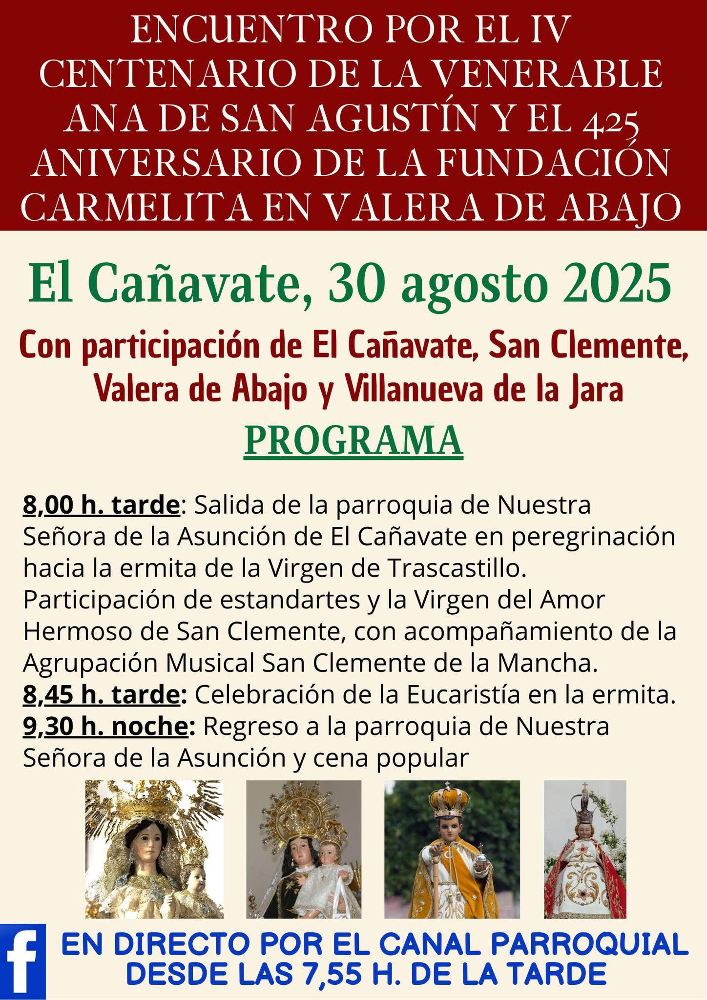 Con motivo del aniversario de la fundación del Carmelo en Valera de Abajo por la Venerable Ana de San Agustín, mañana sábado habrá un encuentro fraterno entre parroquias en la Ermita de la Virgen de Trascastillo.