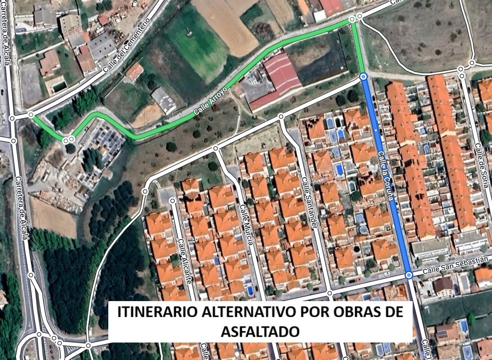 Todos los residentes deberán utilizar el itinerario alternativo por Camino del Cementerio – C/ Arroyo – C/ Coruña.