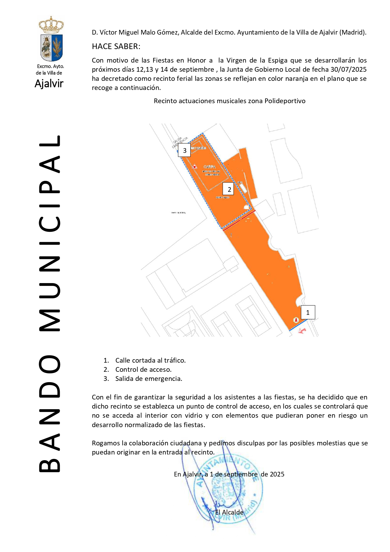 Con motivo de las Fiestas en Honor a la Virgen de la Espiga que se desarrollarán los próximos días 12,13 y 14 de septiembre, la Junta de Gobierno Local de fecha 30/07/2025 ha decretado como recinto ferial las zonas se reflejan en color naranja en el plano que se recoge a continuación.