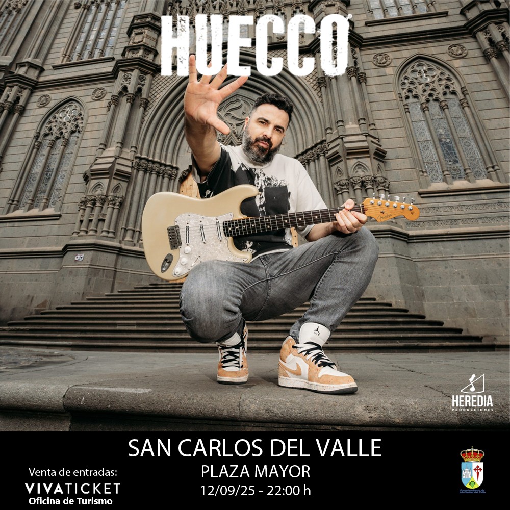 22:00h – En la Plaza Mayor, concierto de HUECCO. El artista extremeño hace una parada en San Carlos del Valle dentro de su gira CRAZY XX ANIVERSARIO TOUR 2025.