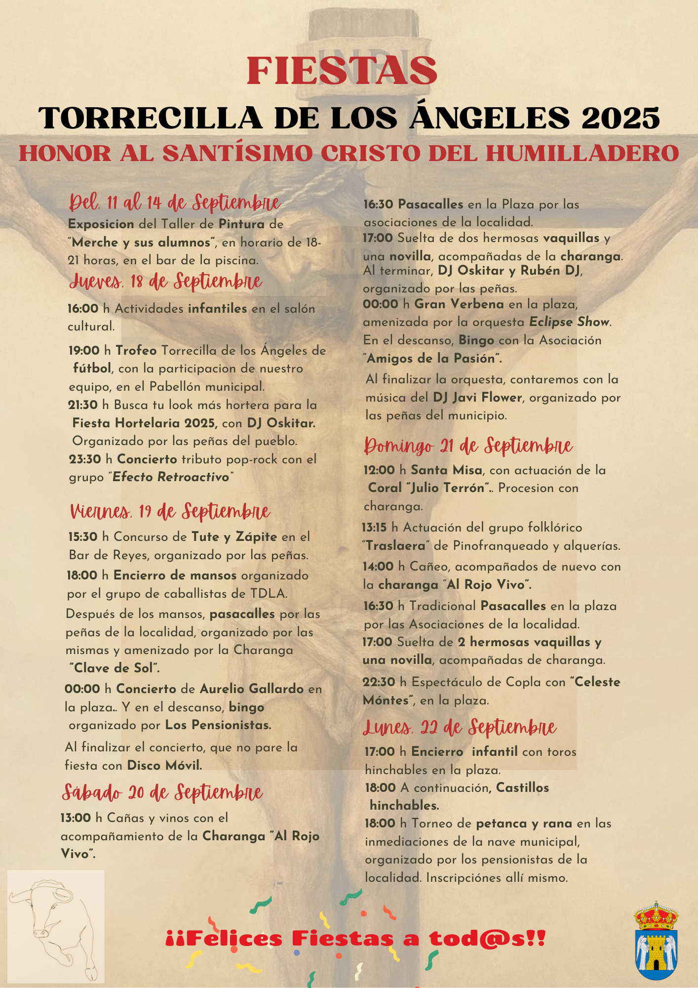 “Compartimos con ilusión el cartel de nuestras fiestas patronales. Gracias a todas las personas, peñas y asociaciones que han hecho posible su organización. Que sean unos días de alegría, convivencia y disfrute para todos. Invitamos también a vecinos y visitantes a acompañarnos y a celebrarlo juntos.”
