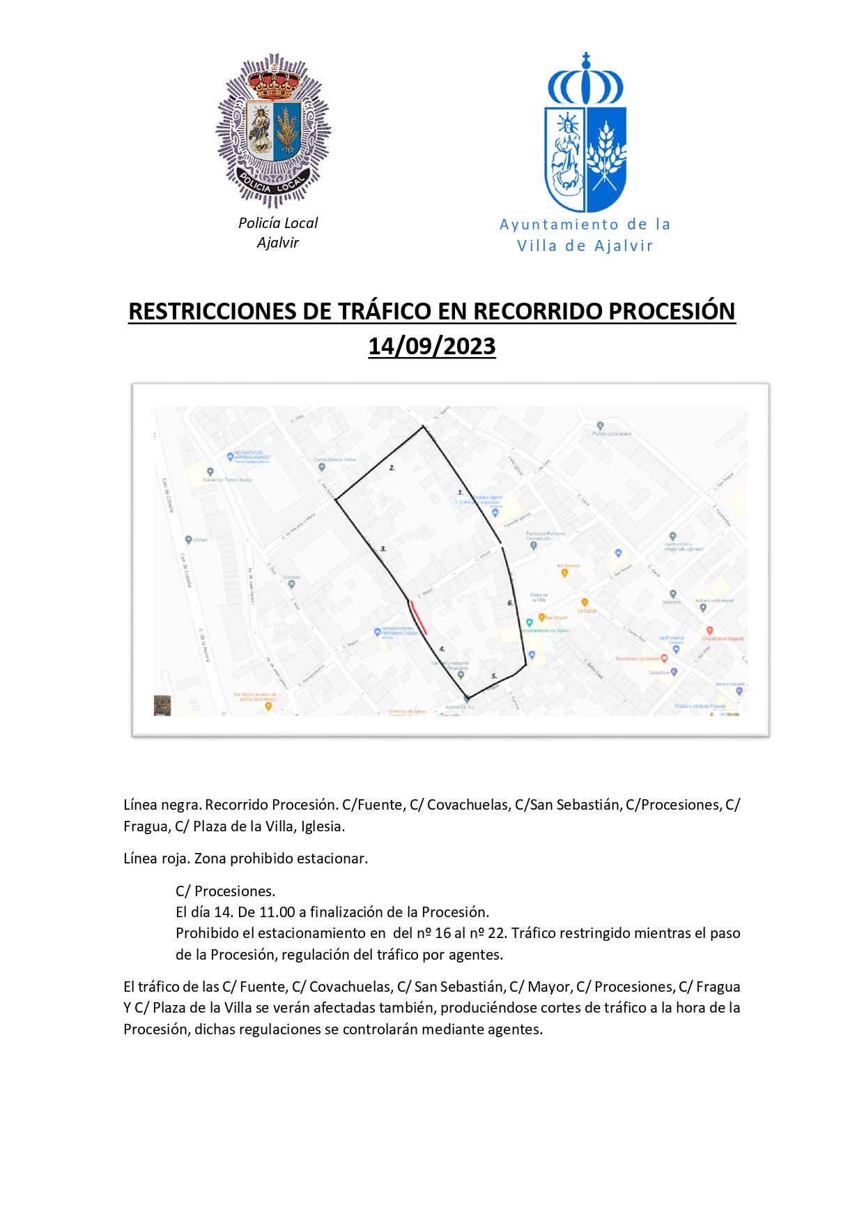 Con motivo de la procesión que tendrá lugar el próximo día 14 de septiembre, se realizaran las siguientes restricciones al tráfico: