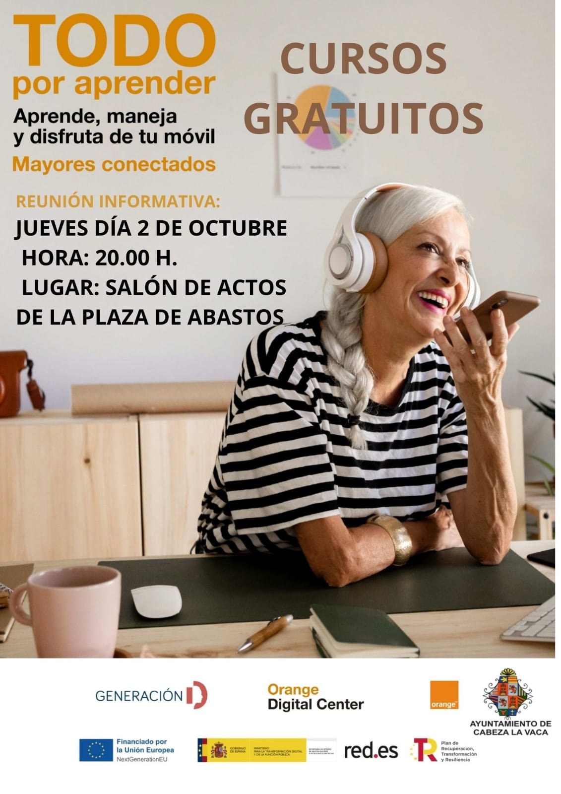 El Ayuntamiento de Cabeza la Vaca, junto a Orange Digital Center y el programa Generación D, te invita a participar en cursos gratuitos especialmente pensados para personas mayores.