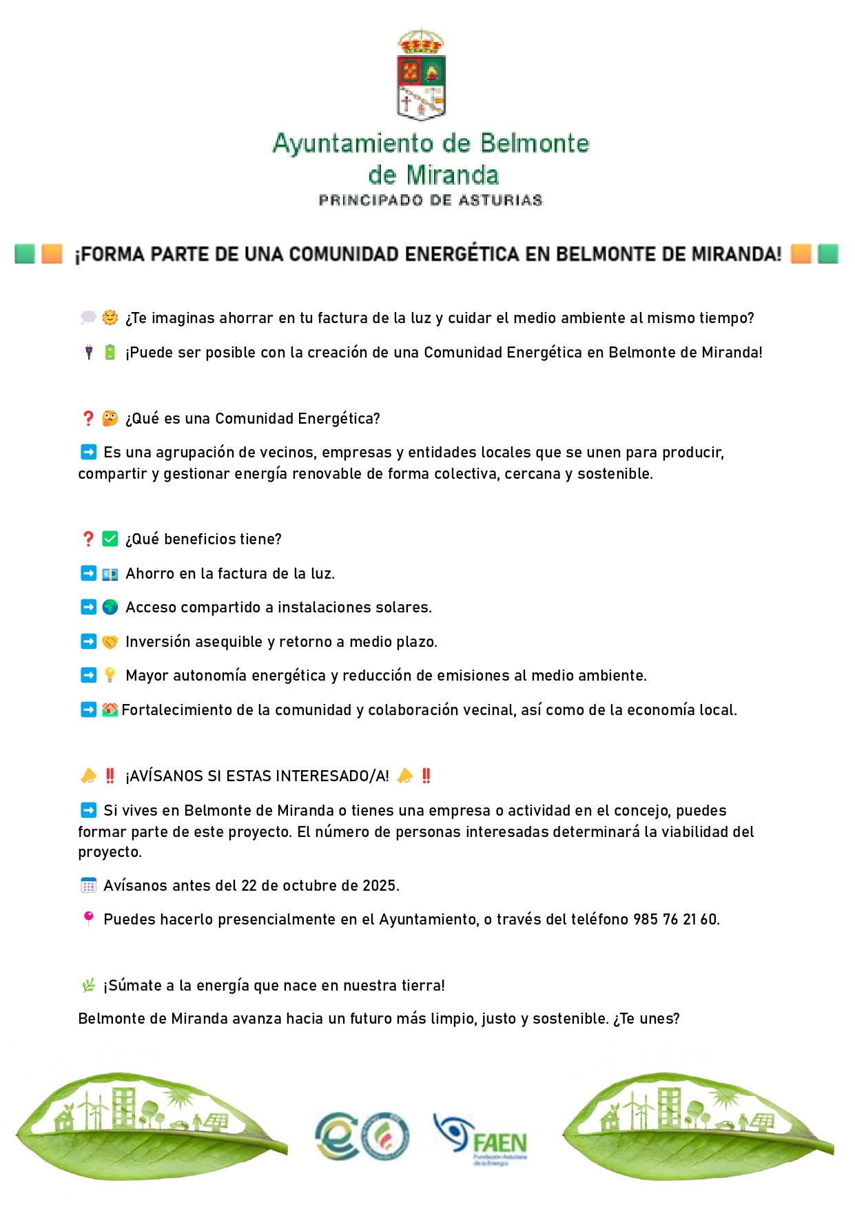 ➡️ Si vives en Belmonte de Miranda o tienes una empresa o actividad en el concejo, puedes formar parte de este proyecto. El número de personas interesadas determinará la viabilidad del proyecto.