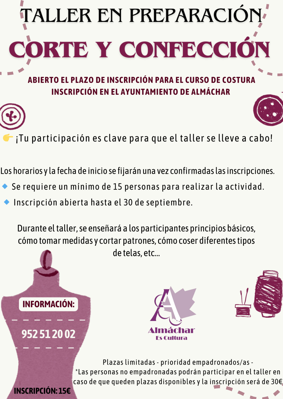 ¡Llega el Taller de Corte y Confección a Almáchar!