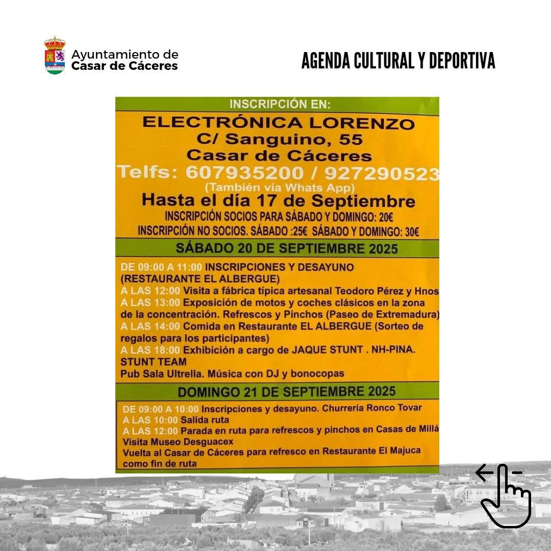 📢 Agenda Cultural y Deportiva Después de un intenso verano... nuestro pueblo sigue con actividades cada fin de semana! A disfrutarlas! 👏🏼👏🏼#casardecaceres