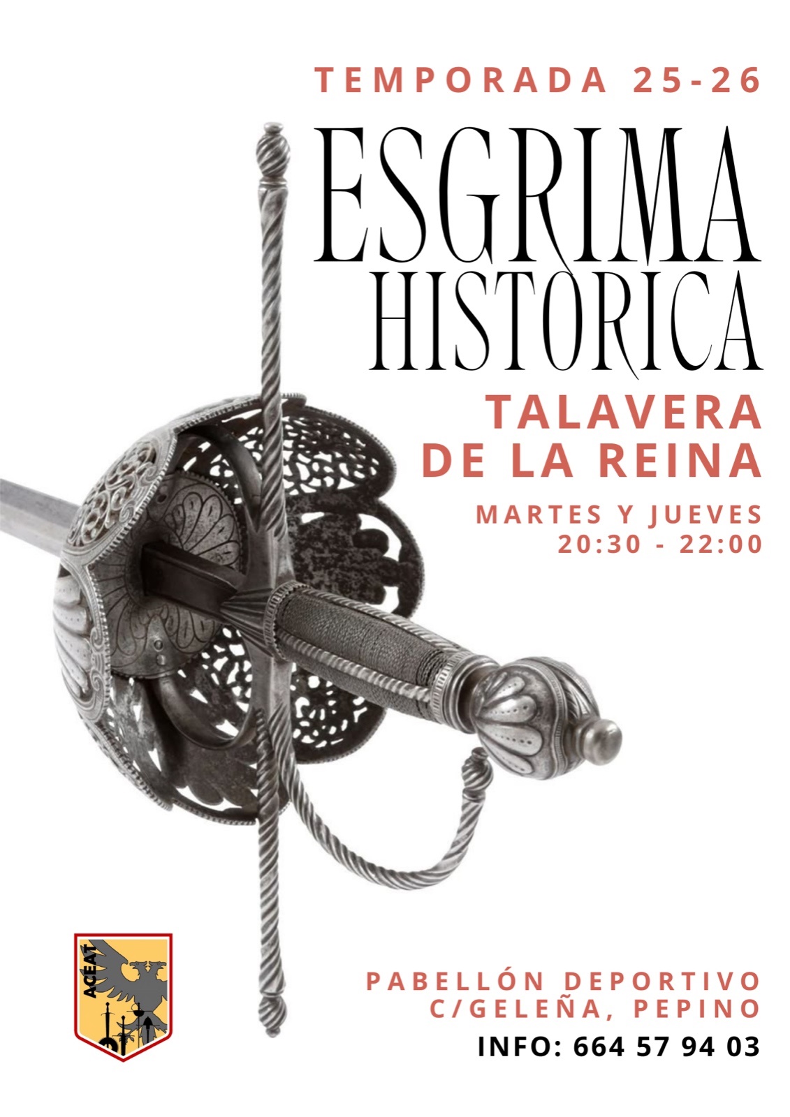 CURSO DE ESGRIMA HISTÓRICATEMPORADA 2025-2026MARTES Y JUEVES DE 20:30 H A 22:00 HPABELLÓN DEPORTIVO DE PEPINOCALLE GELEÑAINFORMACIÓN: TLF 664 579 403