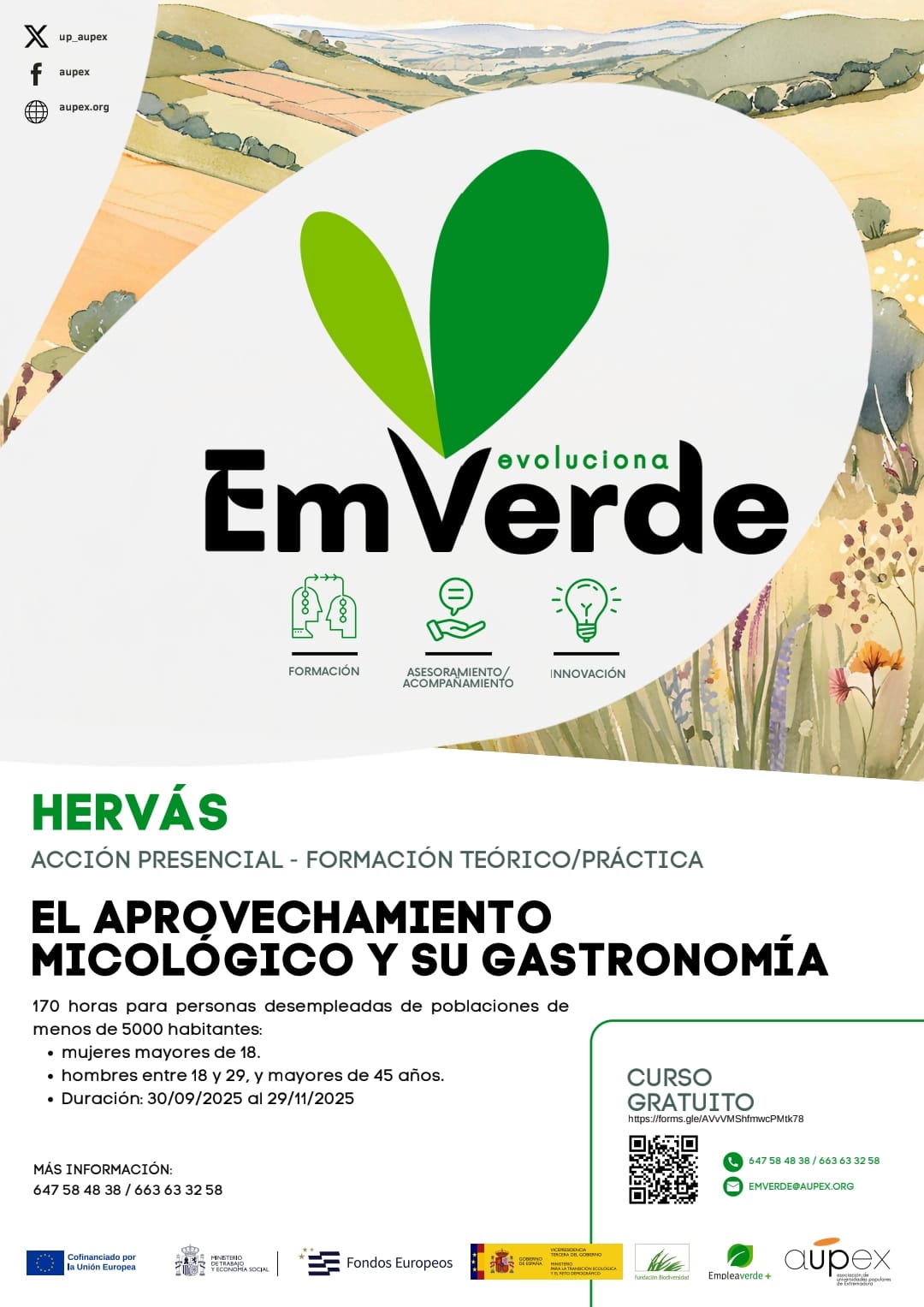 Se adjunta cartel informativo de la acción presencial ''EL APROVECHAMIENTO MICOLÓGICO Y SU GASTRONOMÍA'' que tendrá lugar en Hervás, del 30 de septiembre 2025 al 29 de noviembre 2025.