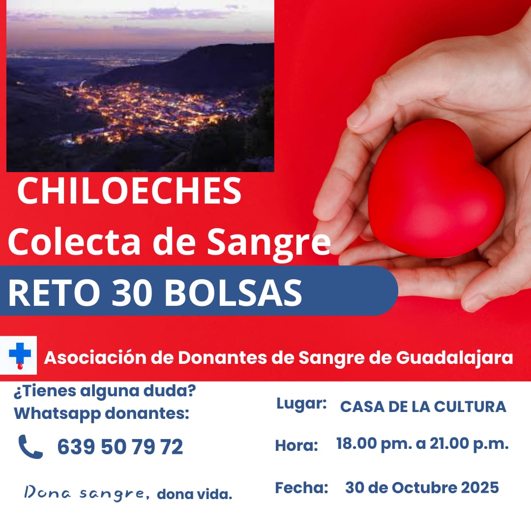 La Asociación de Donantes de Sangre de Guadalajara realizará una visita a Chiloeches para colectar sangre.