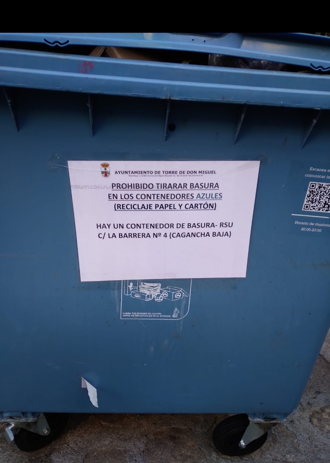 Se recuerda a los vecinos y vecinas que los contenedores azules son únicamente para papel y cartón. Se ha detectado basura en los contenedores azules que están ubicados enfrente del comercio de Ali, en la Plaza Cuatro Caminos.