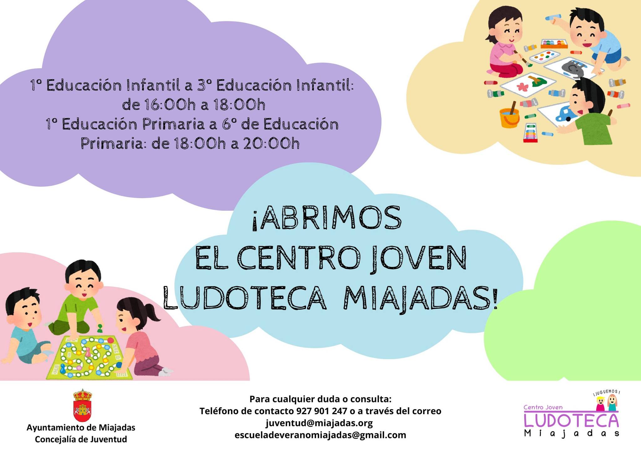 Nos complace informar a todos que, tras un periodo de cierre y haber pasado un verano de lo más entretenido, el Centro Joven Ludoteca de Miajadas reabre sus puertas.