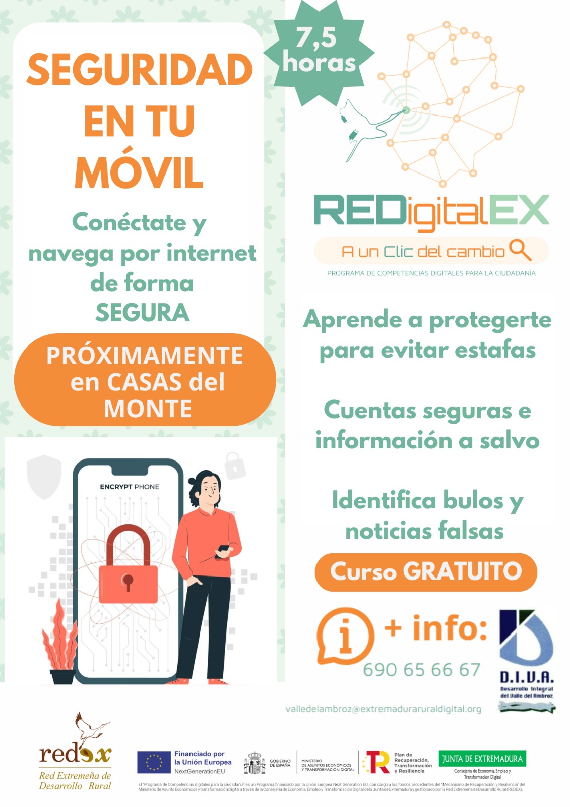 Se adjunta cartel informativo de curso gratuito sobre ''Seguridad en tu móvil''