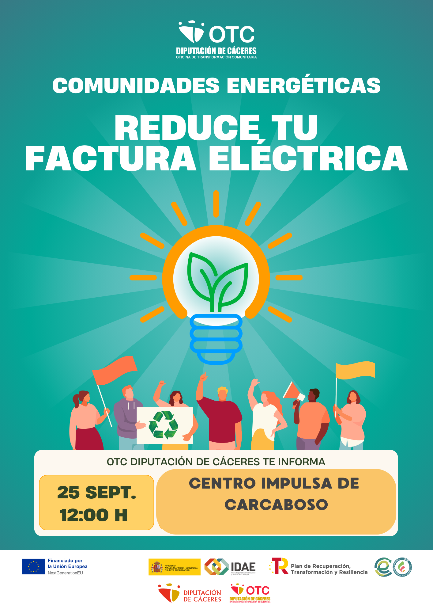 Os informamos que desde la Oficina de Transformación Comunitaria de la Diputación de Cáceres se va a desarrollar una jornada informativa para la ciudadanía y las empresas sobre los beneficios de constituirse en una comunidad energética para reducir la factura eléctrica.