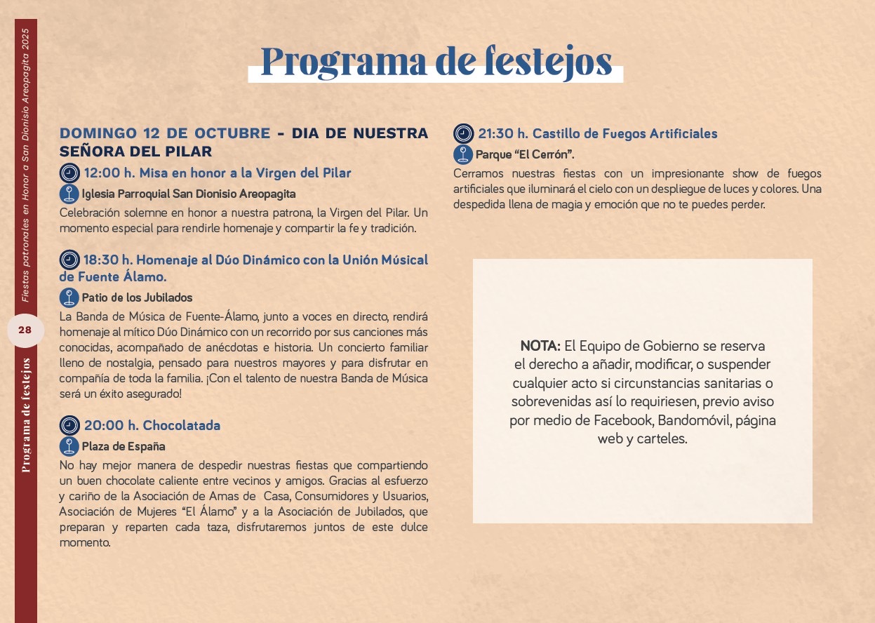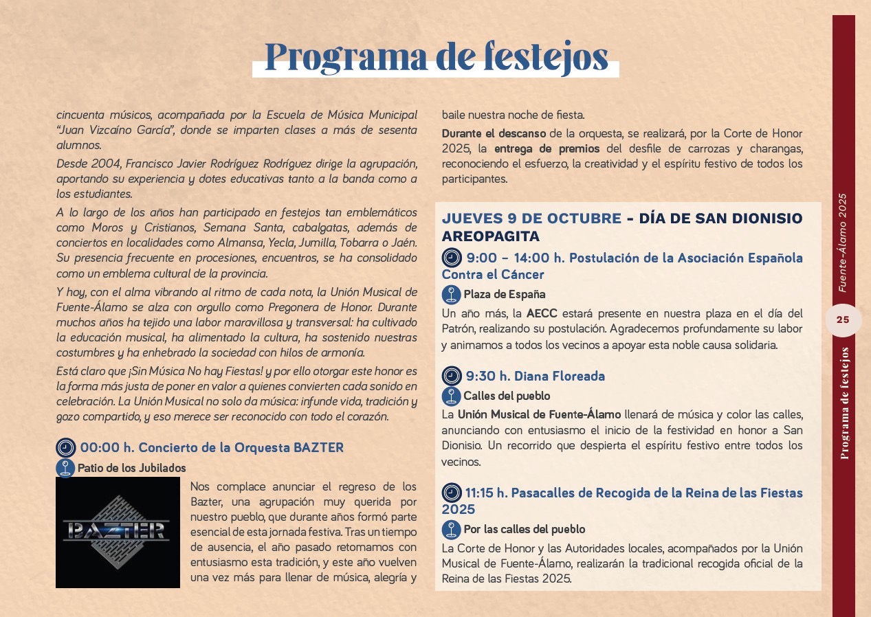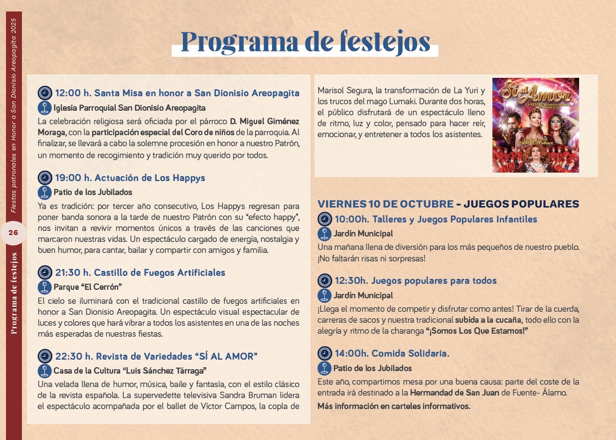 🎉Os dejamos la programación que tendrá lugar durante las Fiestas Patronales en Honor a San Dionisio Areopagita 2025.