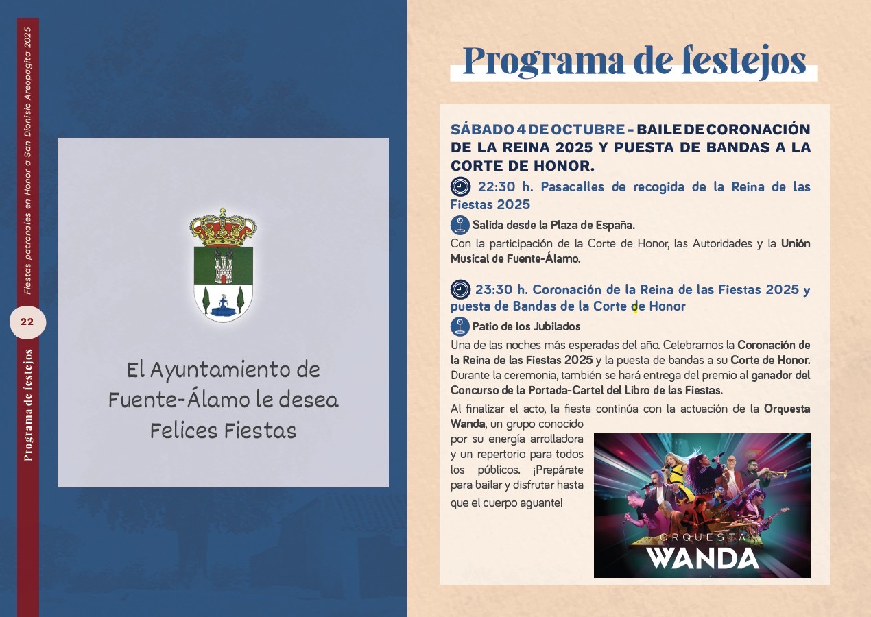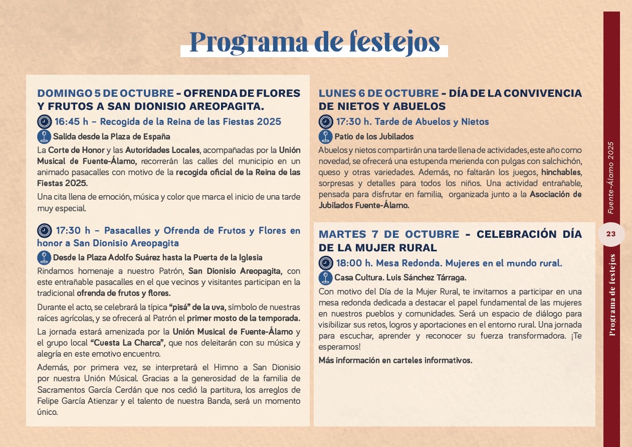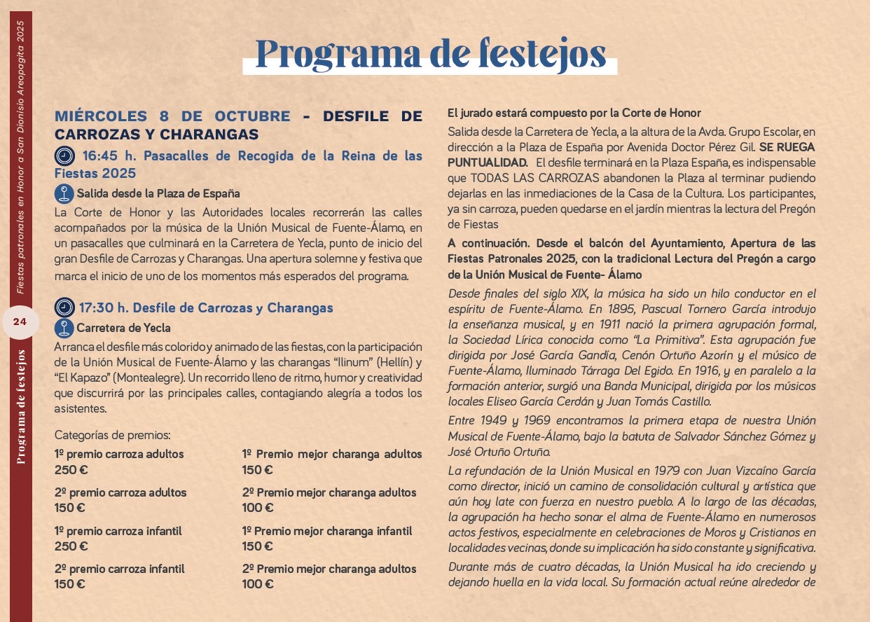🎉Os dejamos la programación que tendrá lugar durante las Fiestas Patronales en Honor a San Dionisio Areopagita 2025.