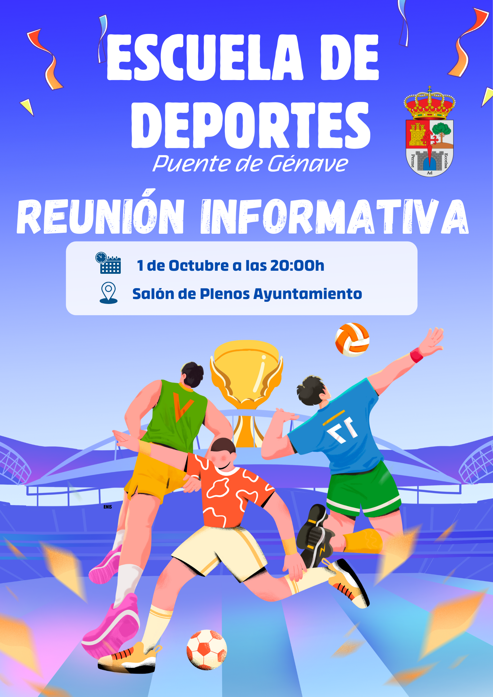 El próximo 1 de octubre a las 20:00h tendrá lugar una reunión informativa en el Salón de Plenos del Ayuntamiento para dar a conocer todos los detalles sobre la nueva Escuela de Deportes.
