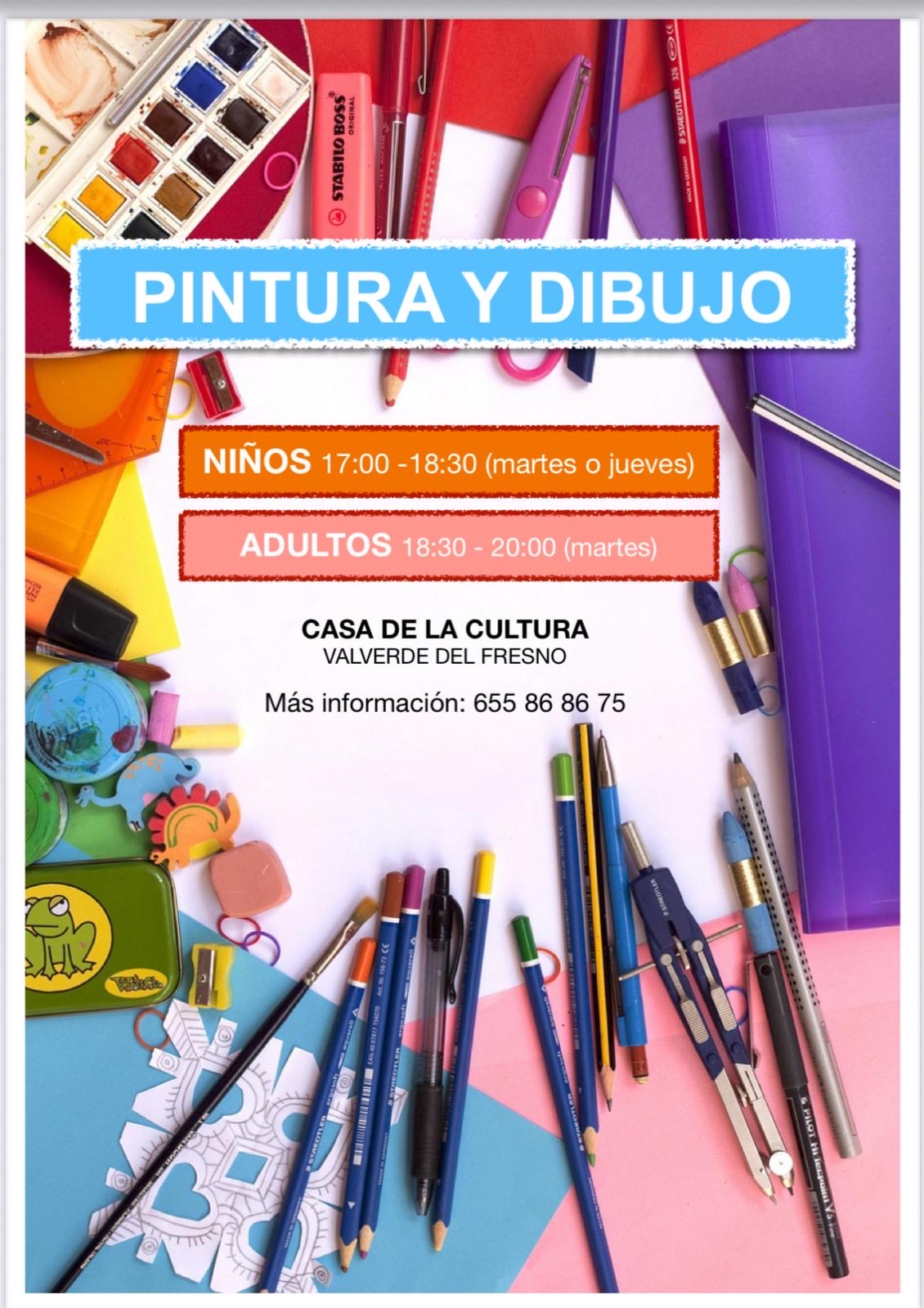 Comienzo de las clases de dibujo y pintura en octubre. Las clases para niños serán los martes o jueves de 17:00 a 18:30, y la de adultos, los martes de 18:30 a 20:00. Más información: 655 868 675