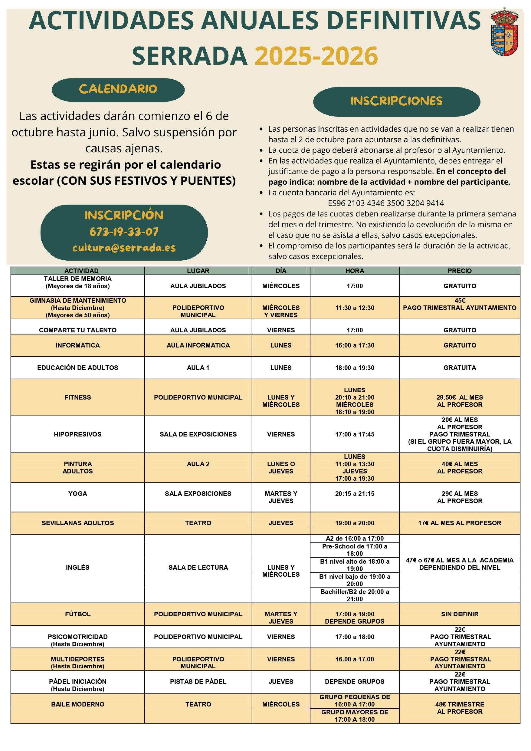 A continuación os dejamos el cartel con las actividades definitivas para el año 2025-2026.