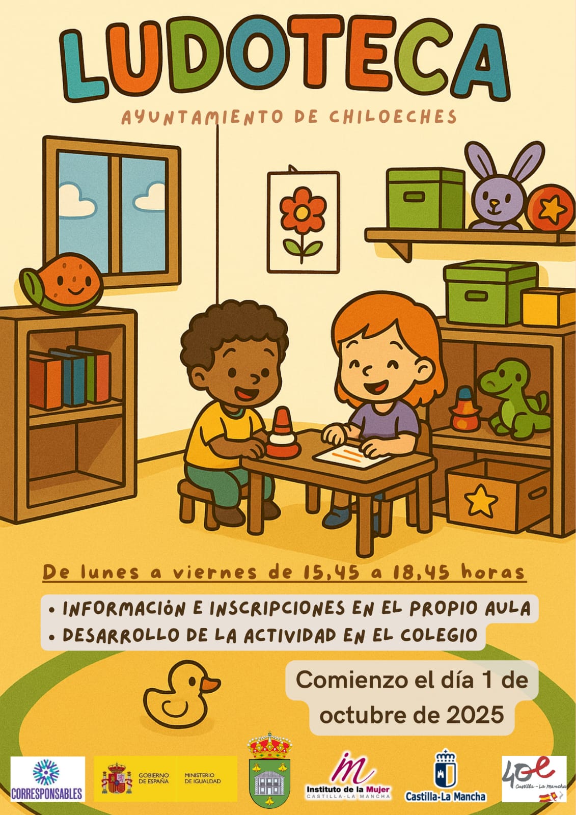 El Ayuntamiento de Chiloeches ha vuelto a poner en marcha el servicio de Ludoteca Municipal gracias al apoyo del Plan Corresponsables para favorecer la conciliación familiar y laboral.