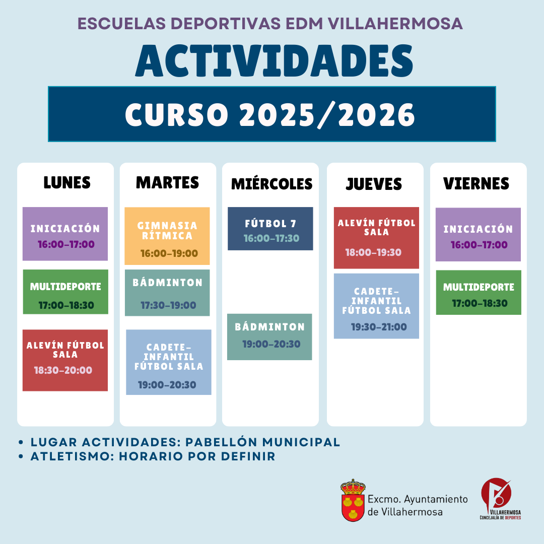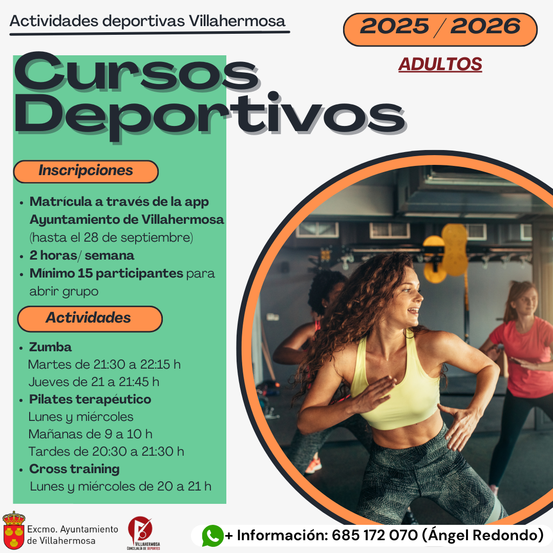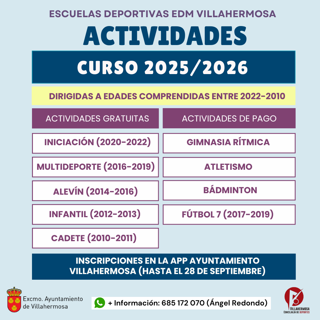 Os recordamos que este domingo, 28 de septiembre, finaliza el plazo de inscripción para las actividades de las Escuelas Deportivas Municipales y Cursos Deportivos para Adultos para el curso 2025/2026.