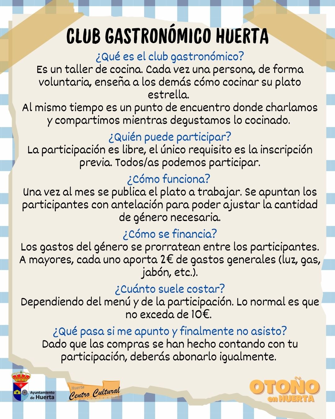 ¿Qué es el club gastronómico? Es un taller de cocina. Cada vez una persona, de forma voluntaria, enseña a los demás cómo cocinar su plato estrella. Al mismo tiempo es un punto de encuentro donde charlamos y compartimos mientras degustamos lo cocinado.