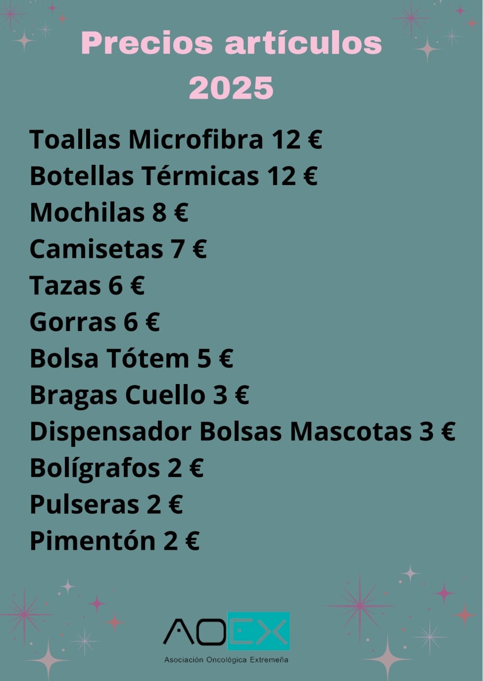 A PARTIR DE MAÑANA 30 DE SEPTIEMBRE VENTA DE DORSALES Y MERCHANDISING DE LA ASOCIACION ONCOLOGICA EXTREMEÑA.LUNES/MARTES/JUEVES DE 9.00 A 12.00HCASA DE LA CULTURA. "Traer el importe justo"