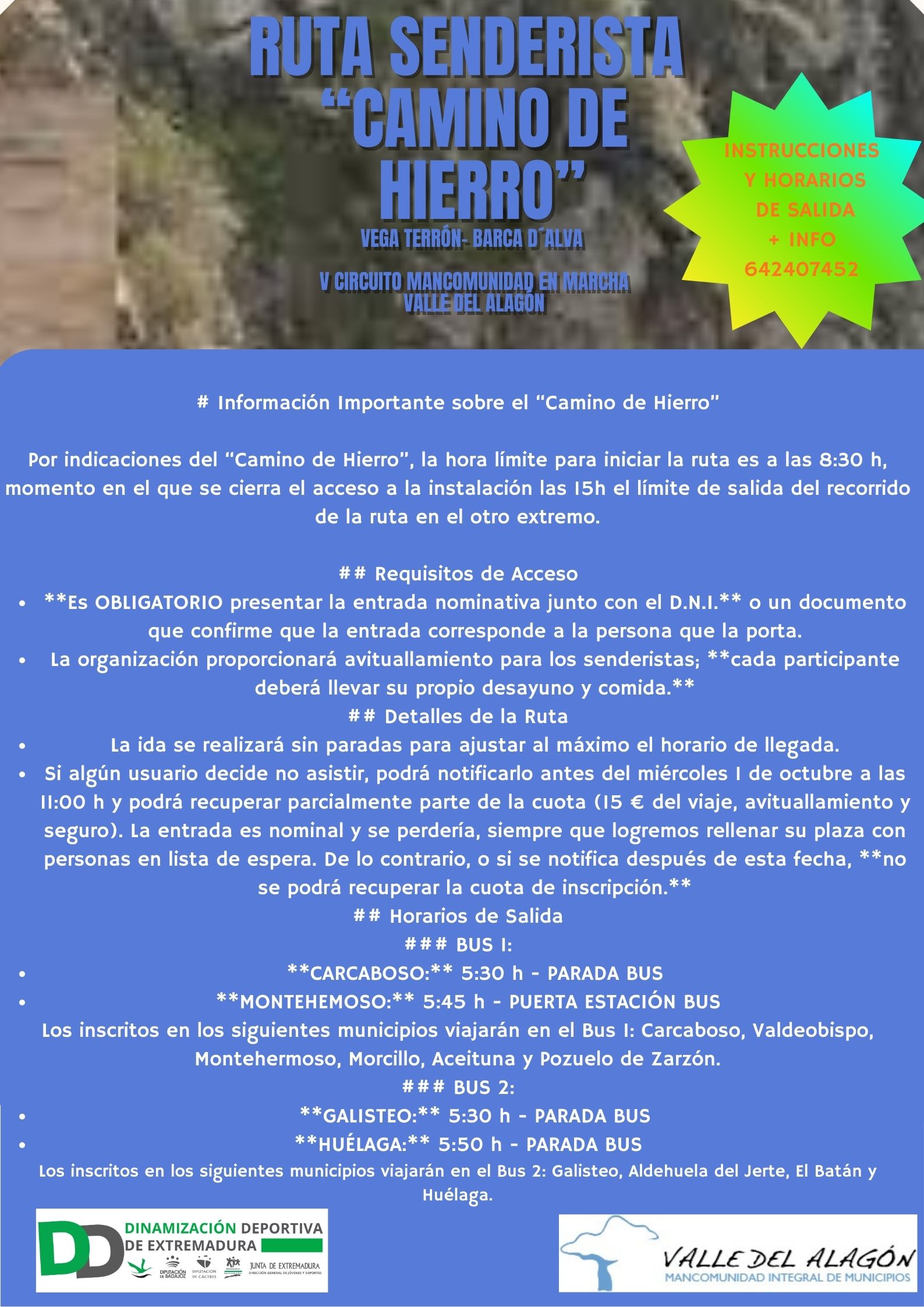 Adjuntamos instrucciones para las personas apuntadas a la Ruta Senderista Camino de Hierro prevista para el día 5 de octubre de 2025.