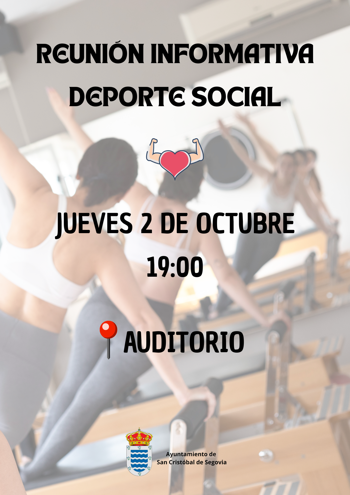 Este jueves 2 de octubre a las 19:00 te esperamos en el AUDITORIO para la Reunión Informativa sobre Deporte Social.