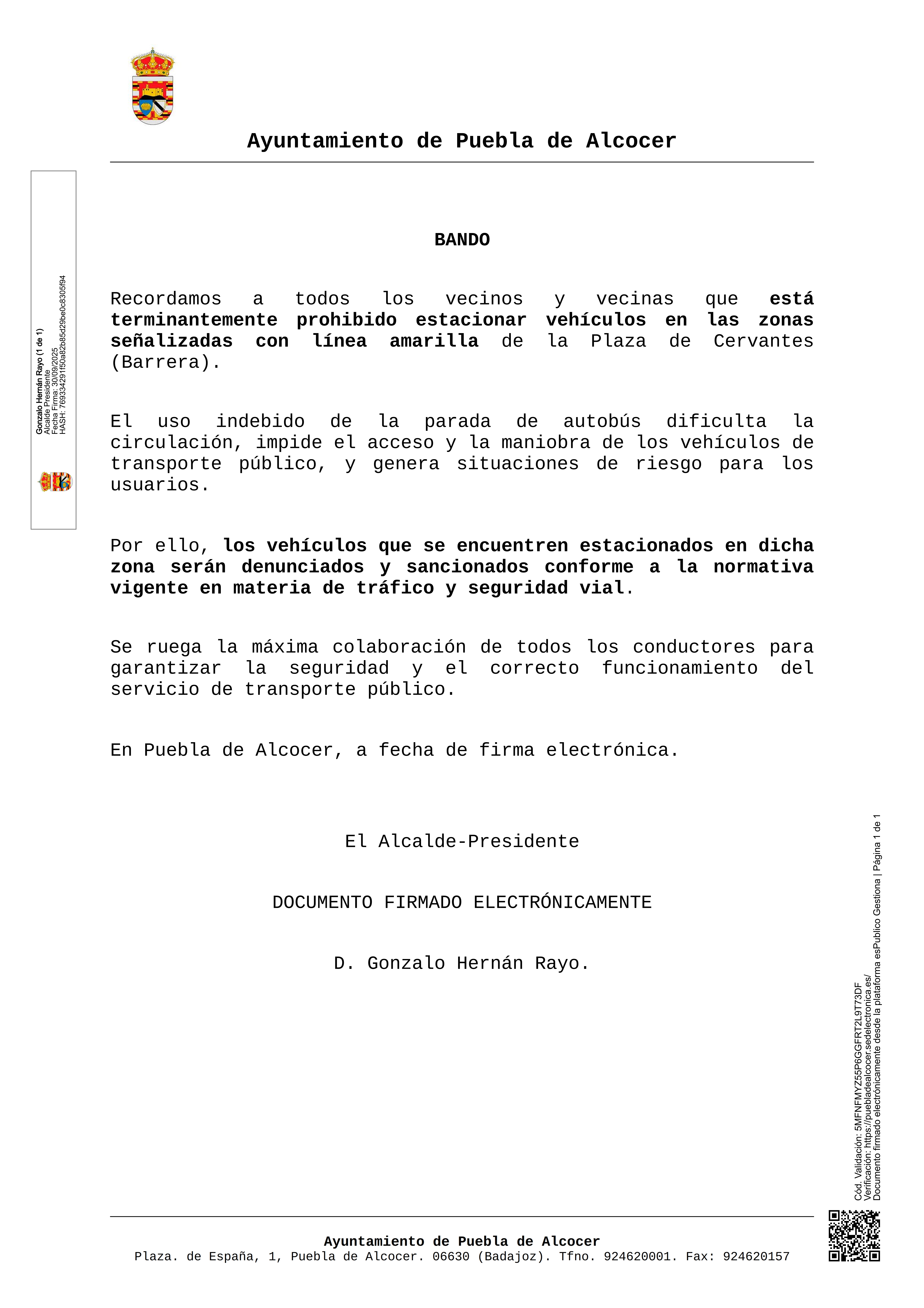 Bando prohibición de estacionamiento en Plaza de Cervantes.