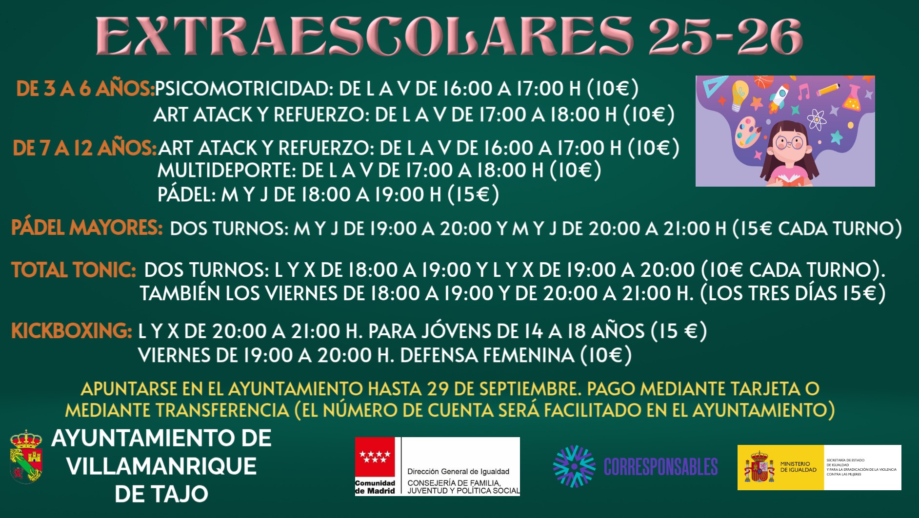Os recordamos que a partir de hoy empiezan las clases extraescolares y las de deporte.