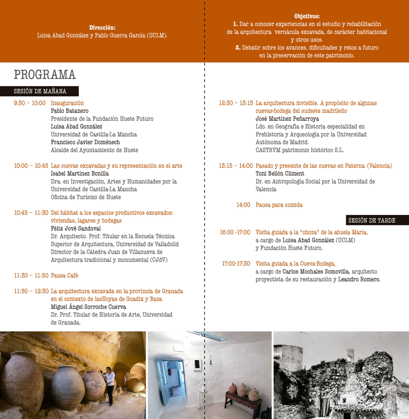Cartel anunciador y programa: https://www.huete.org/wp/2025/10/02/jornada-sobre-arquitectura-tradicional-excavada-en-huete/