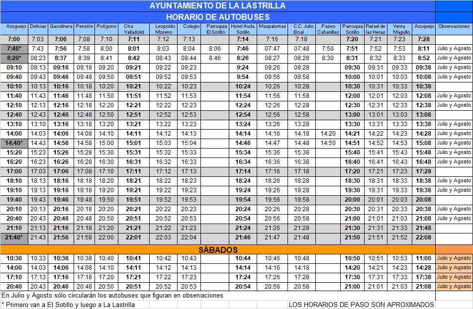 - Comienzo del horario de autobuses a las 7:00 a.m.
