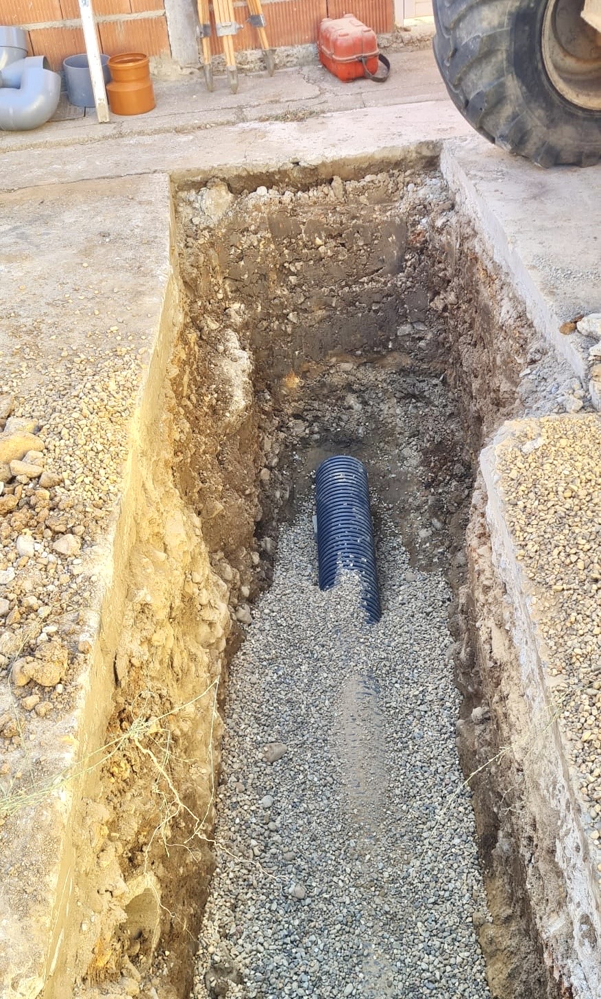 Se ha procedido a sustituir la tubería hasta el desagüe general por una de plástico corrugada más ancha conectando las salidas de las viviendas a la general para que permita la salida de las aguas residuales de forma fluida y evitar así un gran inconveniente para los vecinos.