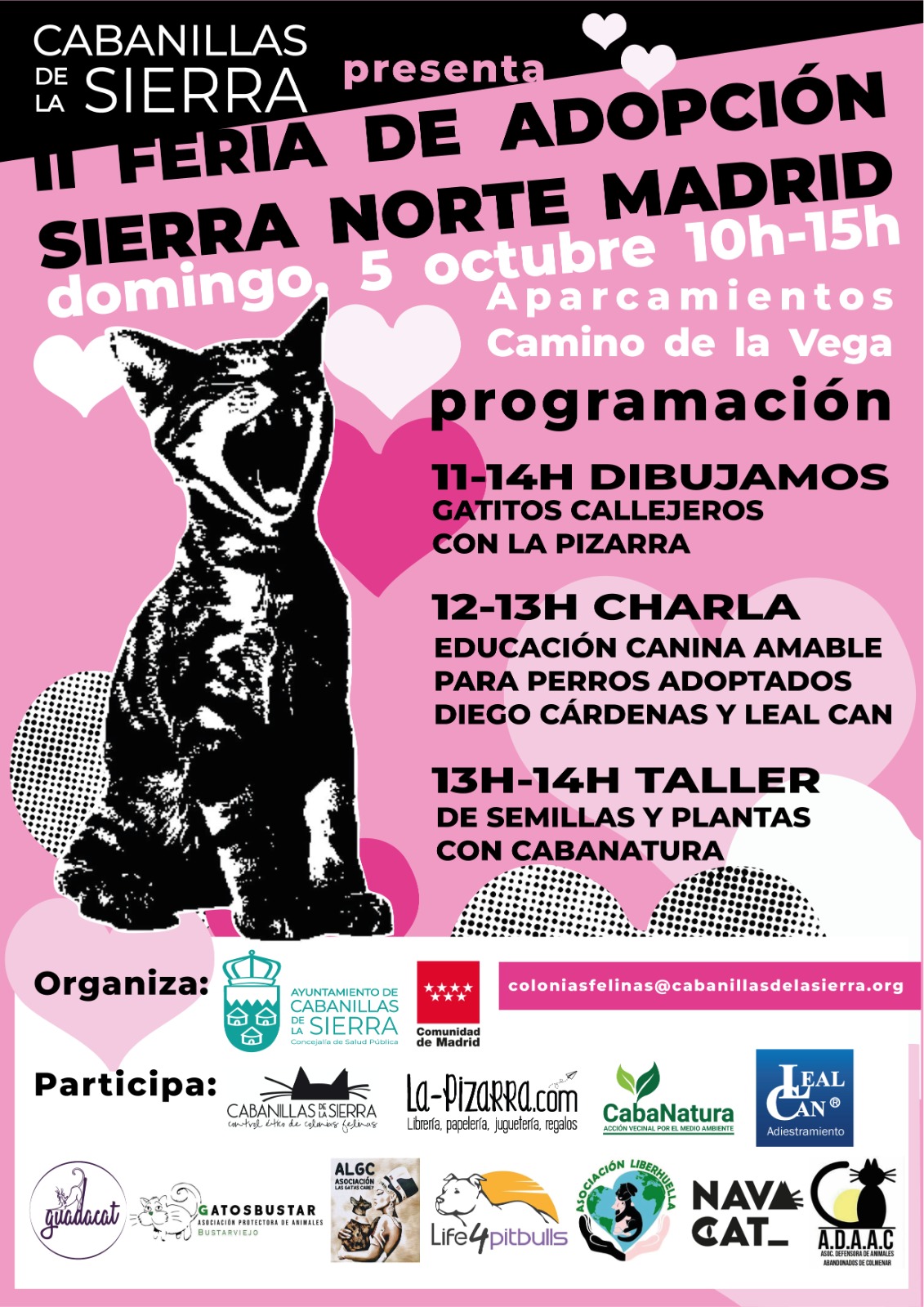 🐶🐱No te pierdas la II Feria de Adopción Sierra Norte Madrid en Cabanillas de la Sierra!!