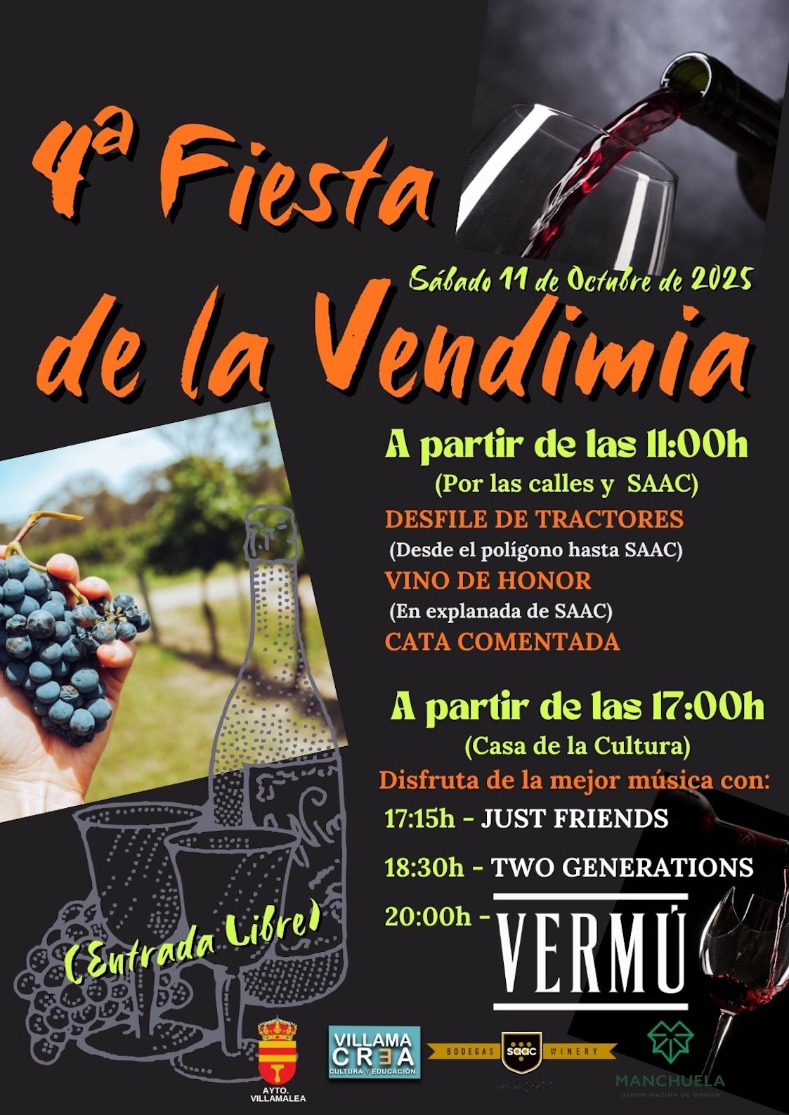 ๐ฟ๐๐๐พ๐๐๐๐พ๐๐ฬ๐: Desfile de tractores por las calles de la localidad, con salida desde el polรญgono y llegada a la explanada de descarga de la bodega SAAC, seguida de una visita guiada a la bodega (por grupos) y un vino den honor con cata comentada en dicha explanada. Habrรก premio/obsequios para los tractores mรกs antiguos. Para concluir durante toda la tarde y hasta la noche, a partir de las 17:00h, mรบsica en directo con los grupos: JUST FRIENDS, TWO GENERATIONS y VERMร.