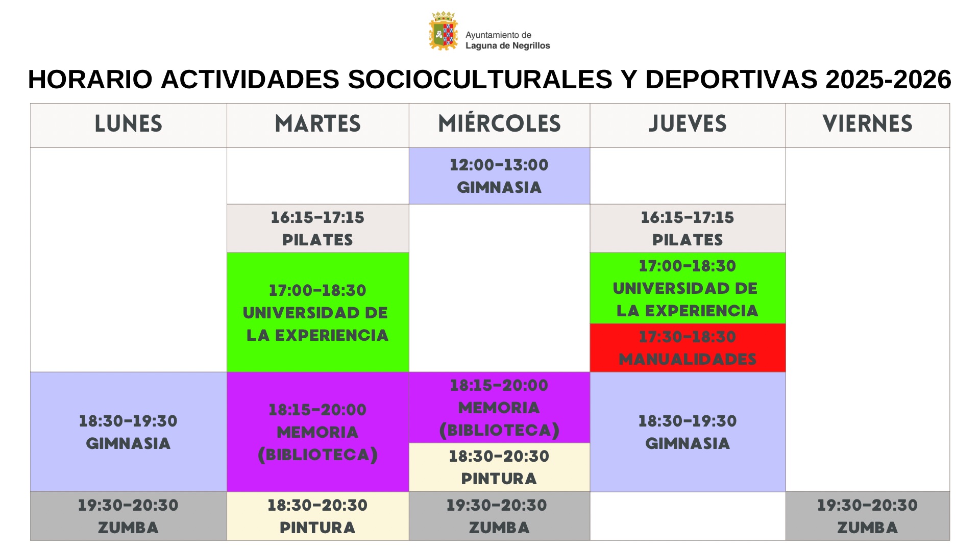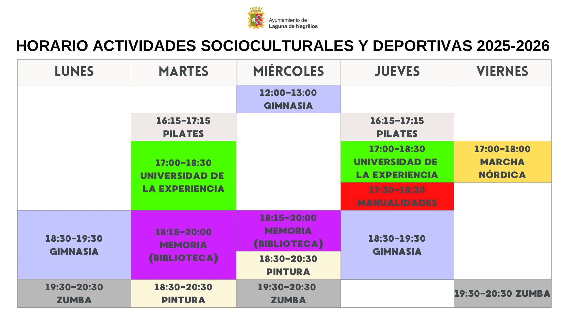 Horarios provisionales de las actividades socioculturales y deportivas de la temporada.