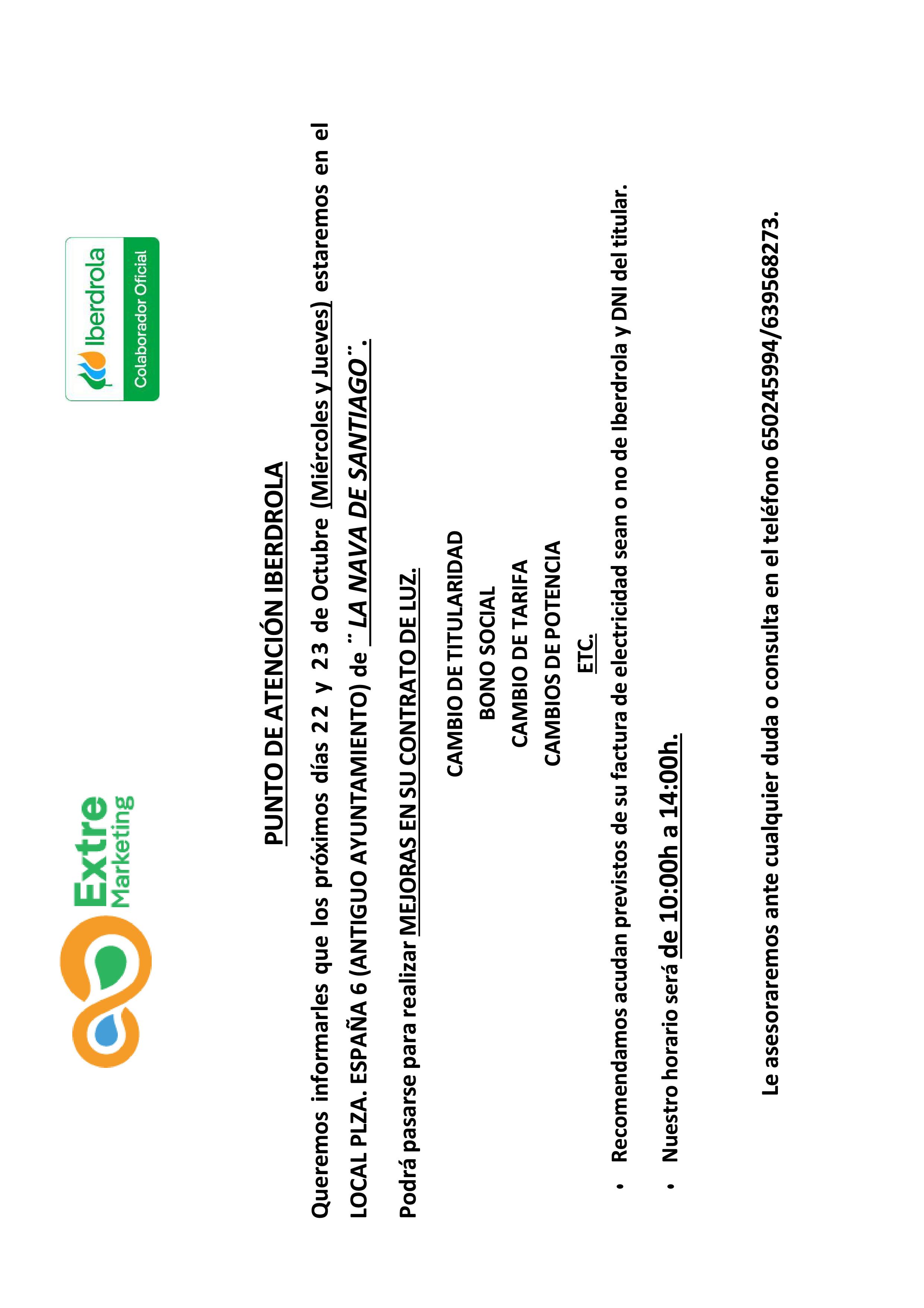 Se informa que los próximos días 22 y 23 de octubre (Miércoles y Jueves) estaremos en el PLAZA ESPAÑA 6 (ANTIGUO AYUNTAMIENTO de ¨ LA NAVA DE SANTIAGO¨).