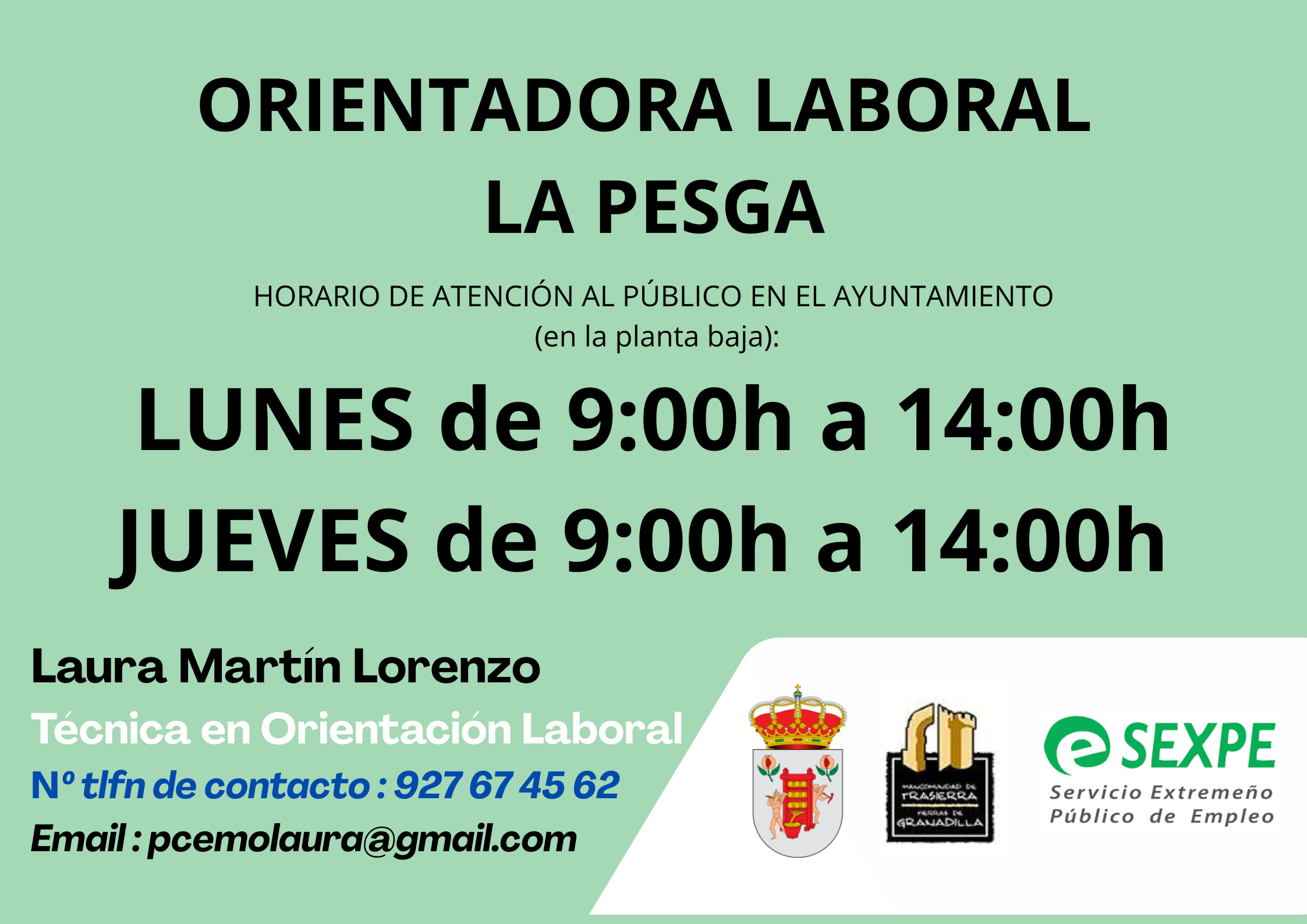 ℹ️ El Ayuntamiento de La Pesga ofrece un servicio de orientación laboral para quienes buscan empleo o necesitan asesoramiento profesional.