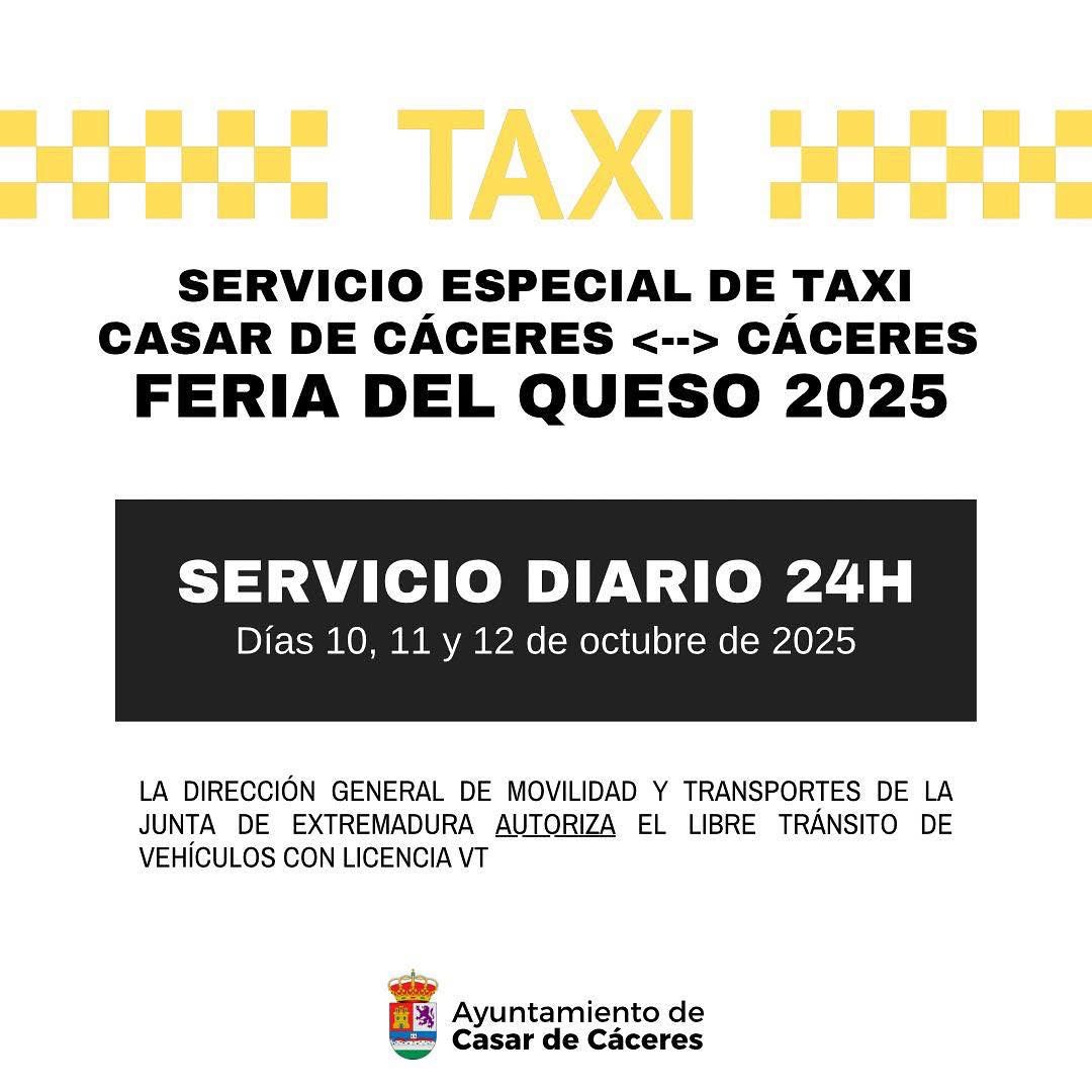 📣 Informamos del Servicio Especial de Taxi para la Feria del Queso 2025 #casardecaceres