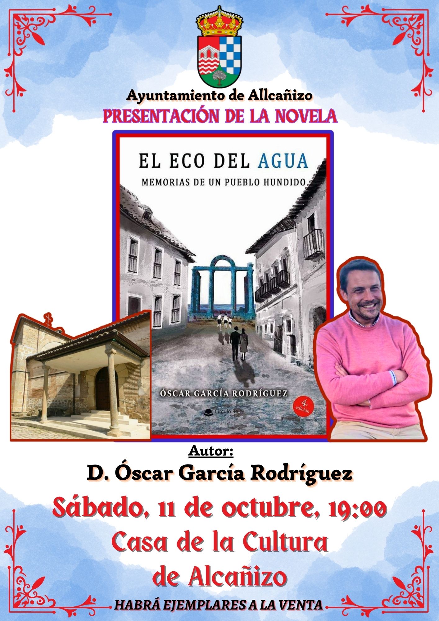 El sábado, 11 de octubre, a las 19:00 h, en la Casa de la Cultura, tendrá lugar la presentación de la novela "El eco del agua: Memorias de un pueblo hundido", a cargo del autor D. Óscar García Rodríguez.
